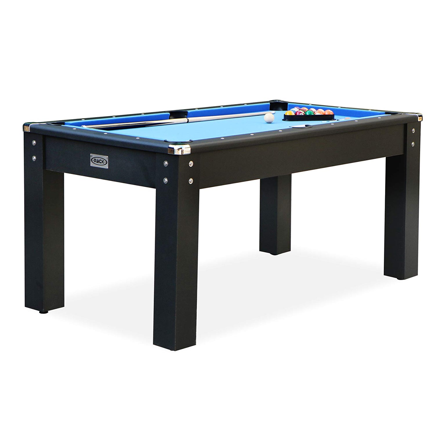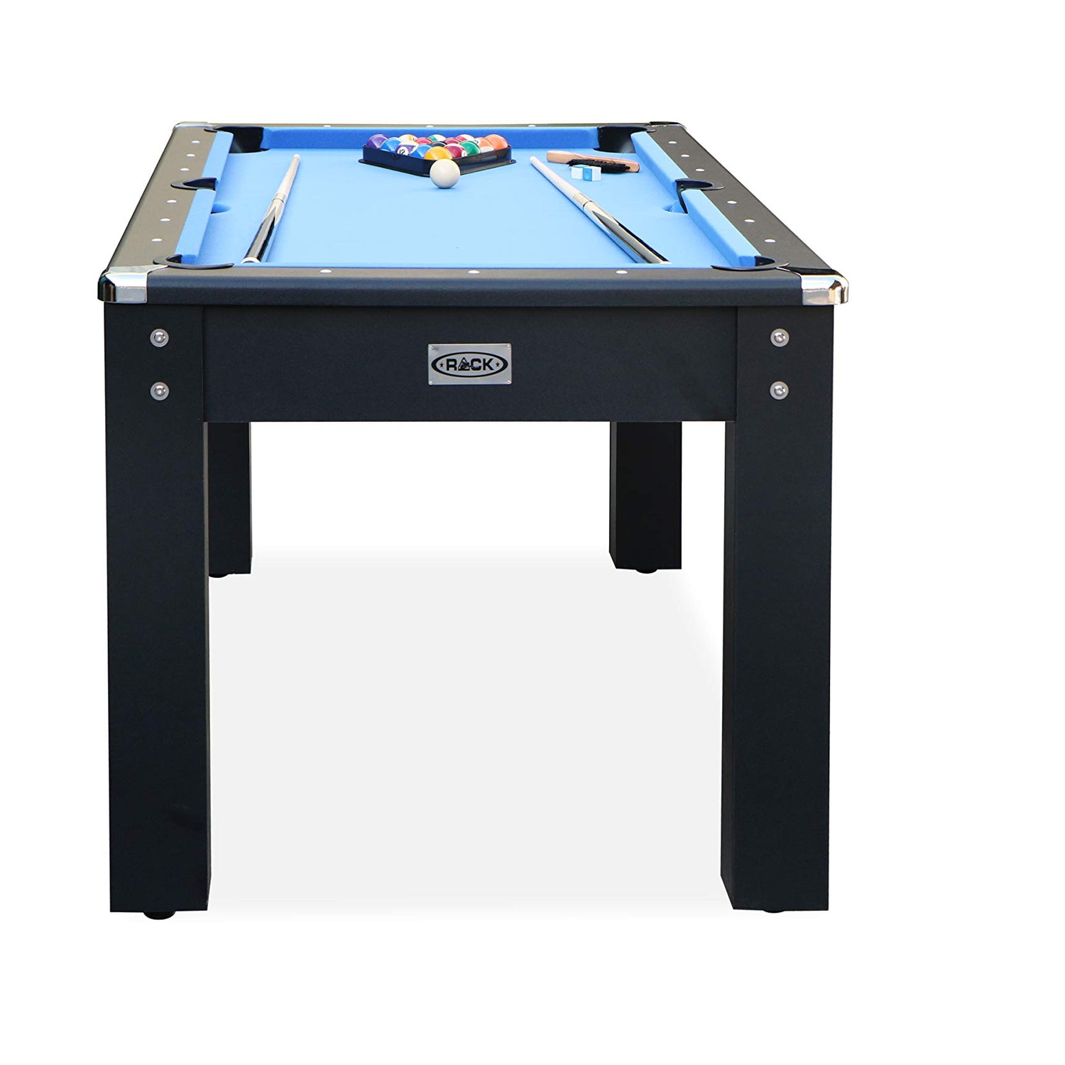 With the launch of our new custom 5.5 Foot billiard table line, the RACK Bolton 5.5 Foot Billiard Table bolts into the market with its simplicity yet elegant aesthetics! We designed this mid size game table for kids, teens and adults, making it an ideal way to perfect your practice shots or shoot pool with your friends during halftime. The RACK Bolton displays a modern, contemporary effect with its blue velvet felt, jet black legs and chrome corner caps! Simply attach the table legs and start shooting pool with your family and friends!