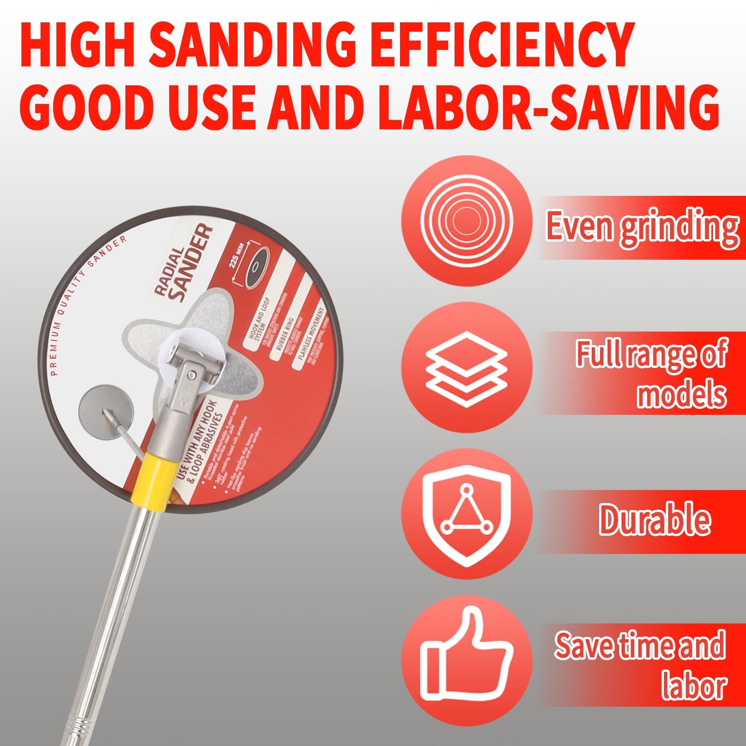 Radial Sander 9 inch,Wall Sander for Painting Prep, Pole Sander for Drywall,360 Degree Rotary Round Circular Hand Sanding Head for Dry Wall and Ceilings+ 25pcs Wall Sanding Discs