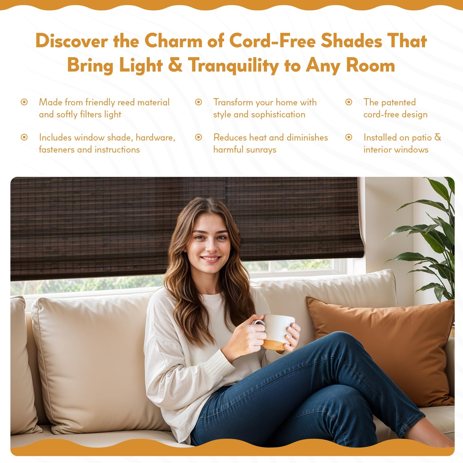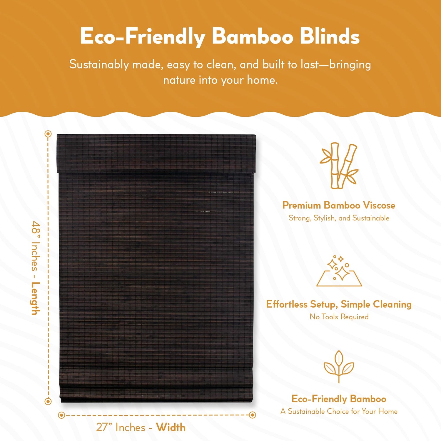 Radiance Cordless Bamboo Roman Shades for Windows - Flatweave Bamboo Blinds for Reduce Bright Light - Easy to Lift & Fold Up Window Shades - Espresso - 27 in. W x 48 in. L - (02208825E)