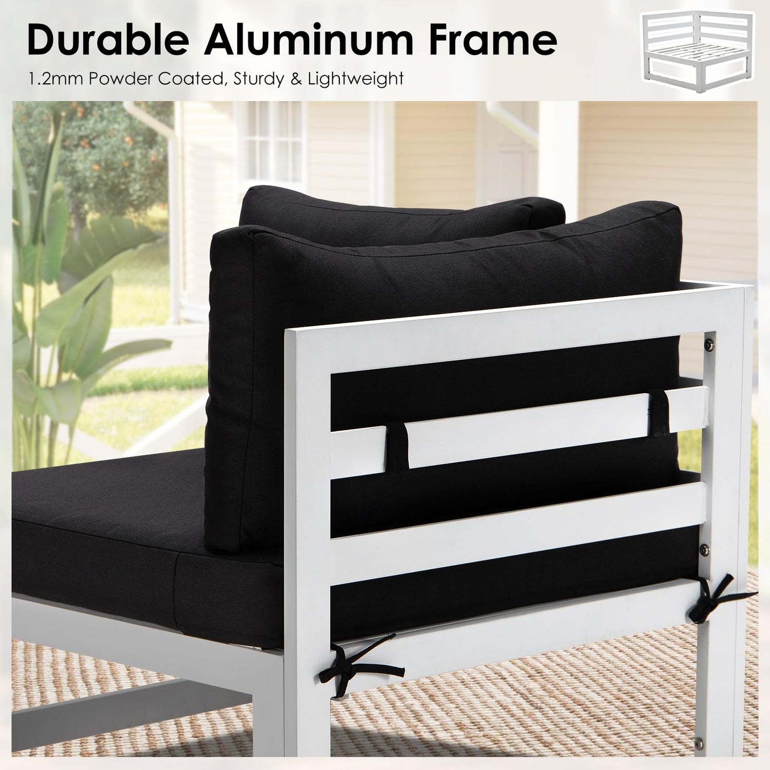 - Lasting Strength: Built with 1.2mm extruded aluminum tubing and precision welding, this aluminum outdoor sectional is made for durability; The sturdy frame supports up to 500 lbs, while a premium powder-coated finish adds rust-resistance and corrosion-resistance for long-term outdoor use; Despite its strength, the lightweight design lets one person easily move and rearrange pieces to refresh any patio, deck, or backyard setup