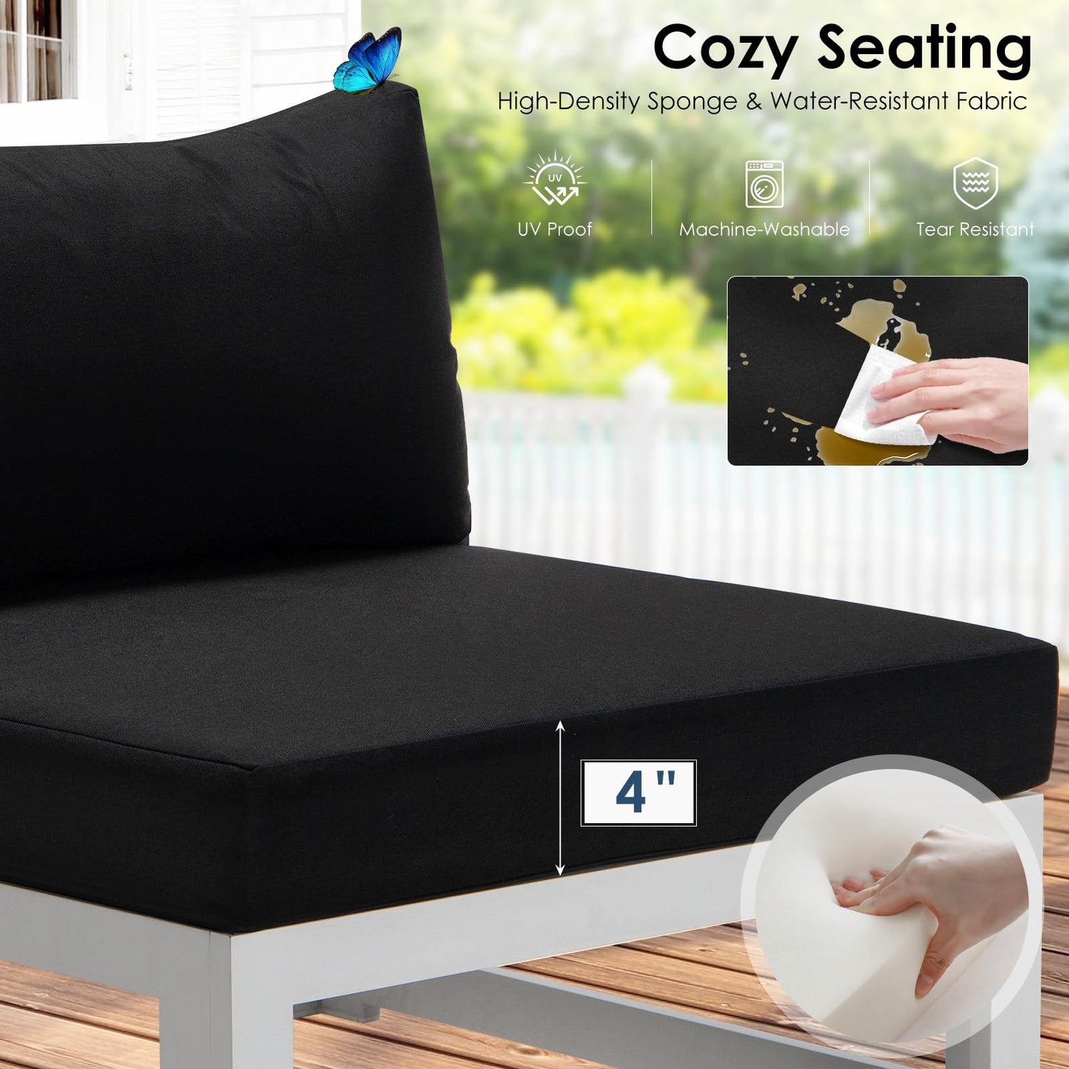 - Spacious Comfort: Designed with oversized seats measuring 29" wide by 29" deep, this aluminum outdoor sofa provides ample space to stretch out and relax; The 4.1" thick, three-layer memory foam cushions deliver lasting support that resists sagging or flattening, even with everyday use; For easy care, the removable cushion covers are machine-washable, keeping your patio or backyard lounge area fresh and inviting