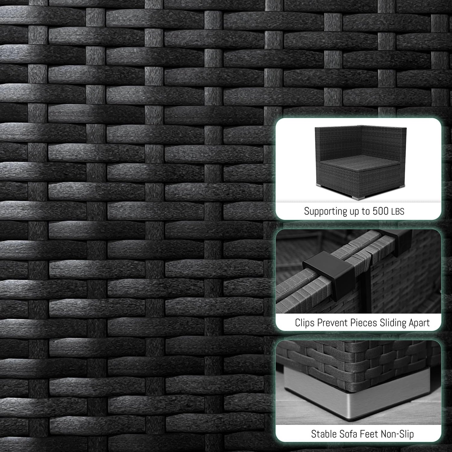 - Premium Materials: Our patio sofa is constructed with heavy-duty metal and high-quality, weather-resistant PE rattan. It combines a stylish appearance with exceptional sturdiness, supporting up to 500 pounds and ensuring long-lasting durability