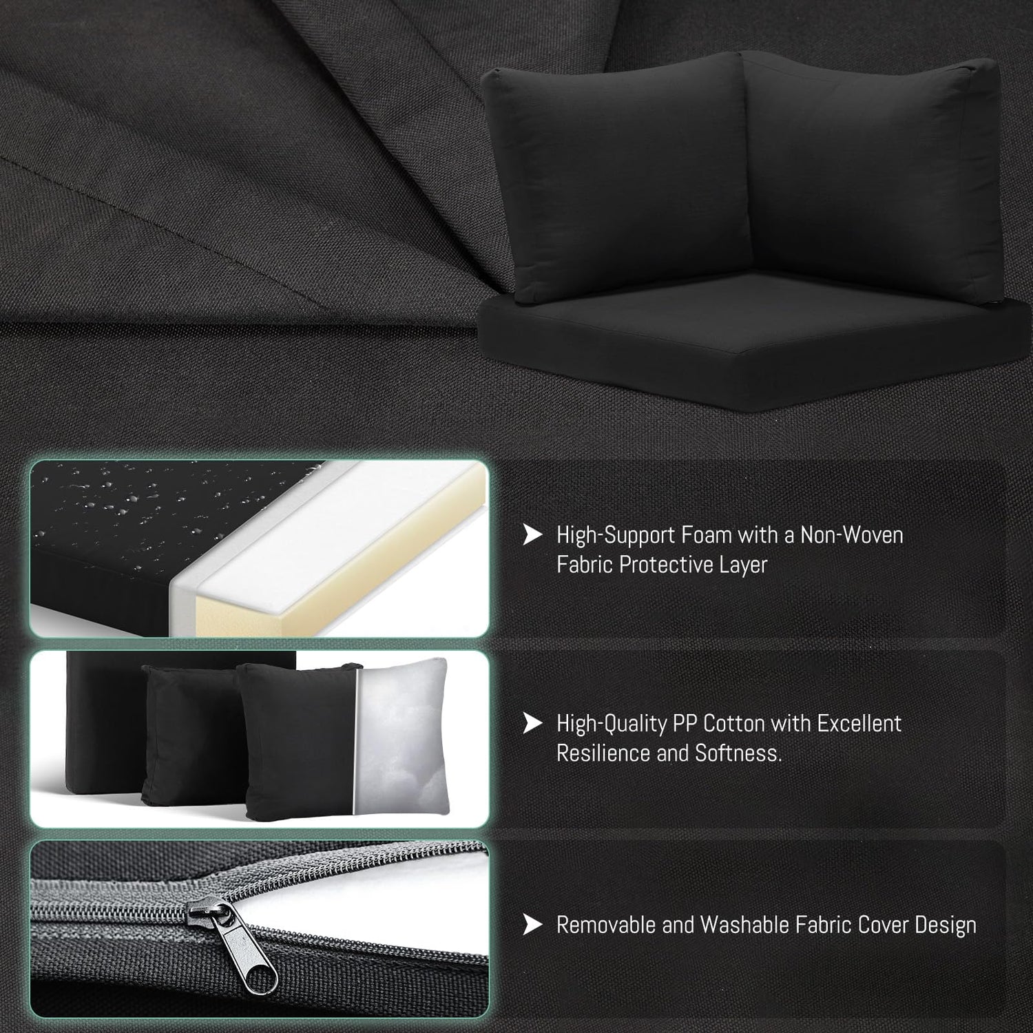 - Attention to Detail: The cushions are hand-sewn, removable, and washable, with a thickness of 4.1 inches and three layers of high-density foam to resist sagging. Non-slip pads are included between the seat and cushions. Additionally, our patio set can be arranged in various configurations