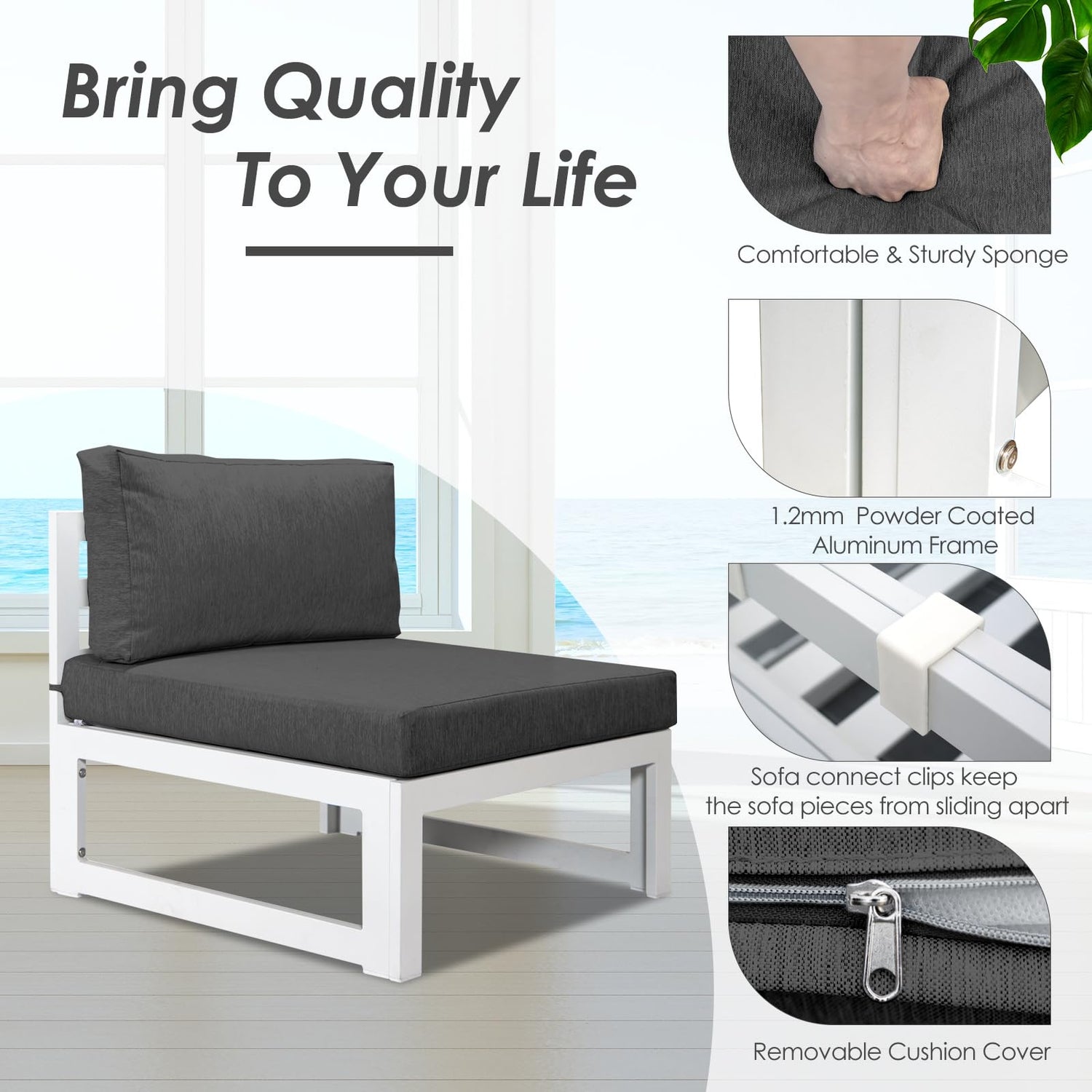 - Durable and Long-Lasting: Our aluminum patio furniture is crafted with premium, luxurious workmanship and features a 1.2mm powder-coated surface. It boasts a classic design, is highly durable, and supports up to 500 pounds