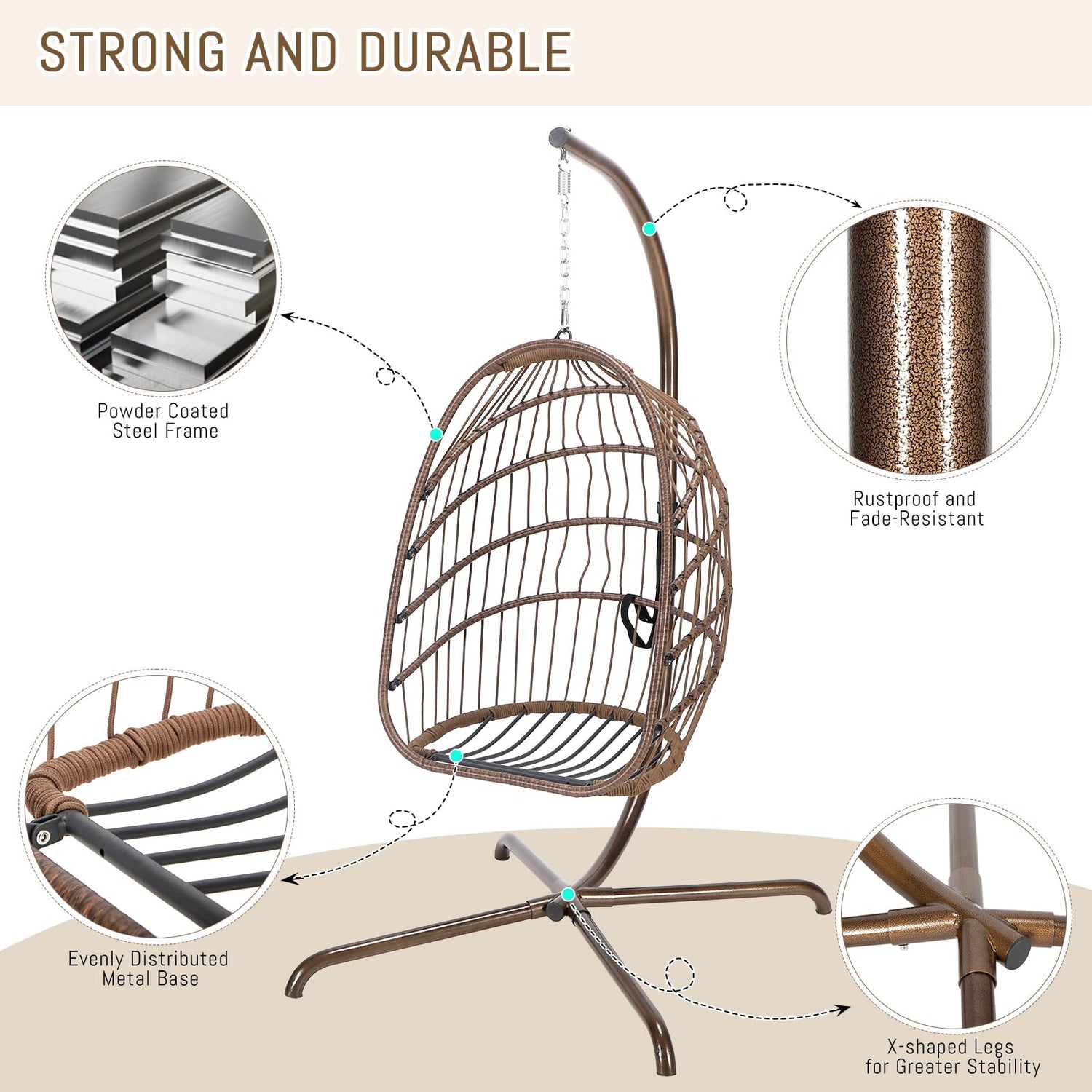 RADIATA Patio Hanging Egg Chair with Stand, Rattan Swing Chair with Cushion and Pillow, Wicker Hammock Chair for Indoor Outdoor Bedroom Living Room Garden (Brown with Cover)