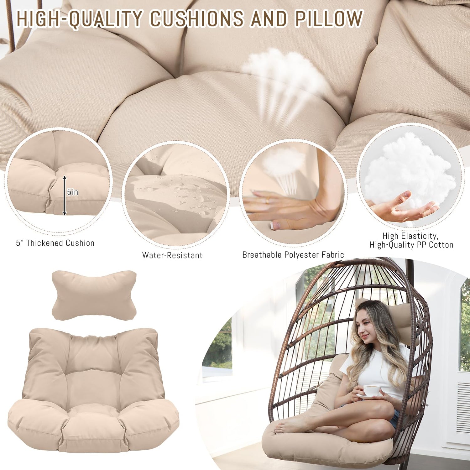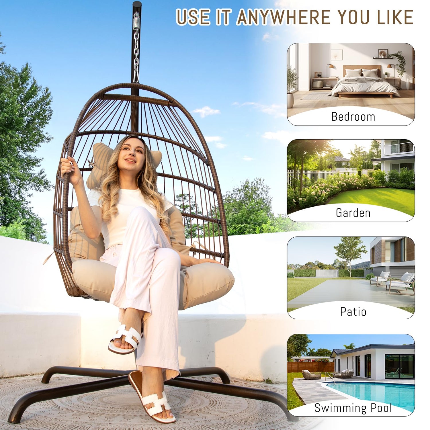 - Decorate Your Dream Space: This swing egg chair is designed for both indoor and outdoor use. It makes a wonderful addition to the patio, deck, garden, yard, backyard, porch, bedroom, and other spaces around your home