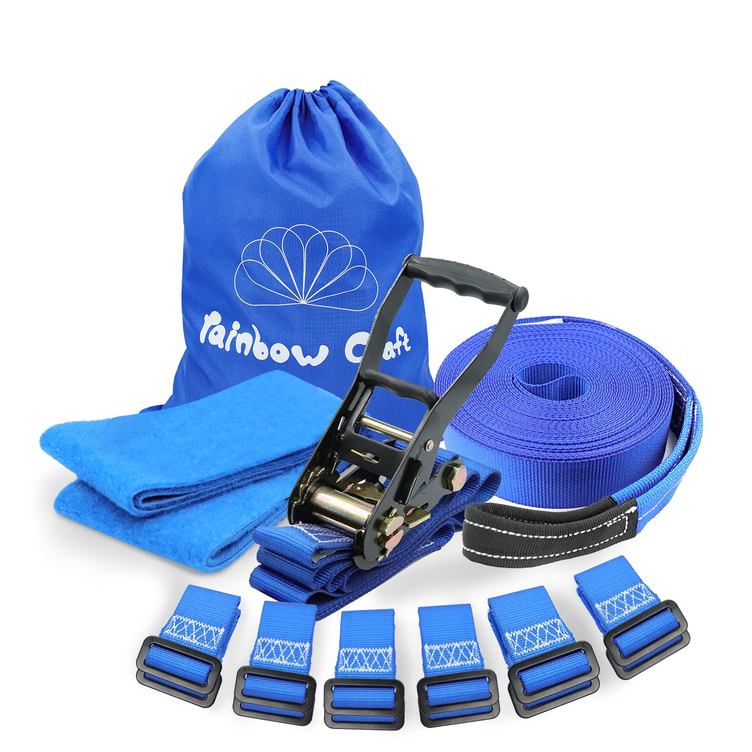 - [Safety You Can Rely On] – Rainbow Craft always puts kids safety first. This monkey line not only improves the material, but also improves the removable loops design. All corners of the buckles are rounded with glazed surface to avoid the slacking line getting ripped. In addition the double-deck deign of the strap loops gives 200% security for hanging different ninja accessories. It's same safe for adults outdoor training&excise.