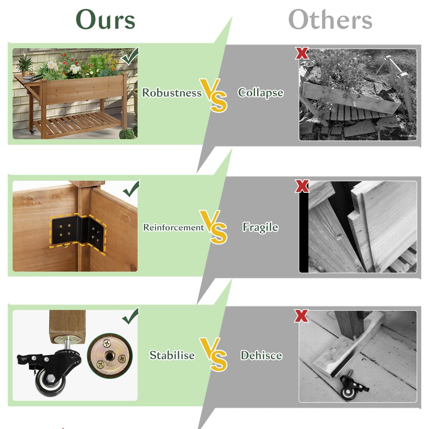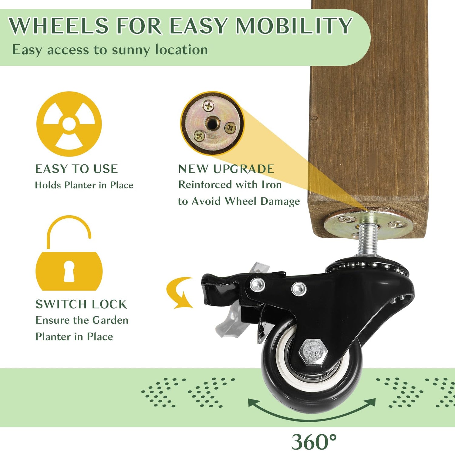 - Effortless Mobility for Your Garden Bed-Move your plants anywhere with 360° lockable wheels! Upgraded metal reinforcements and spacers prevent wheel detachment and leg stress, while brake locks keep the bed stable on uneven ground. No heavy lifting—just roll and grow!