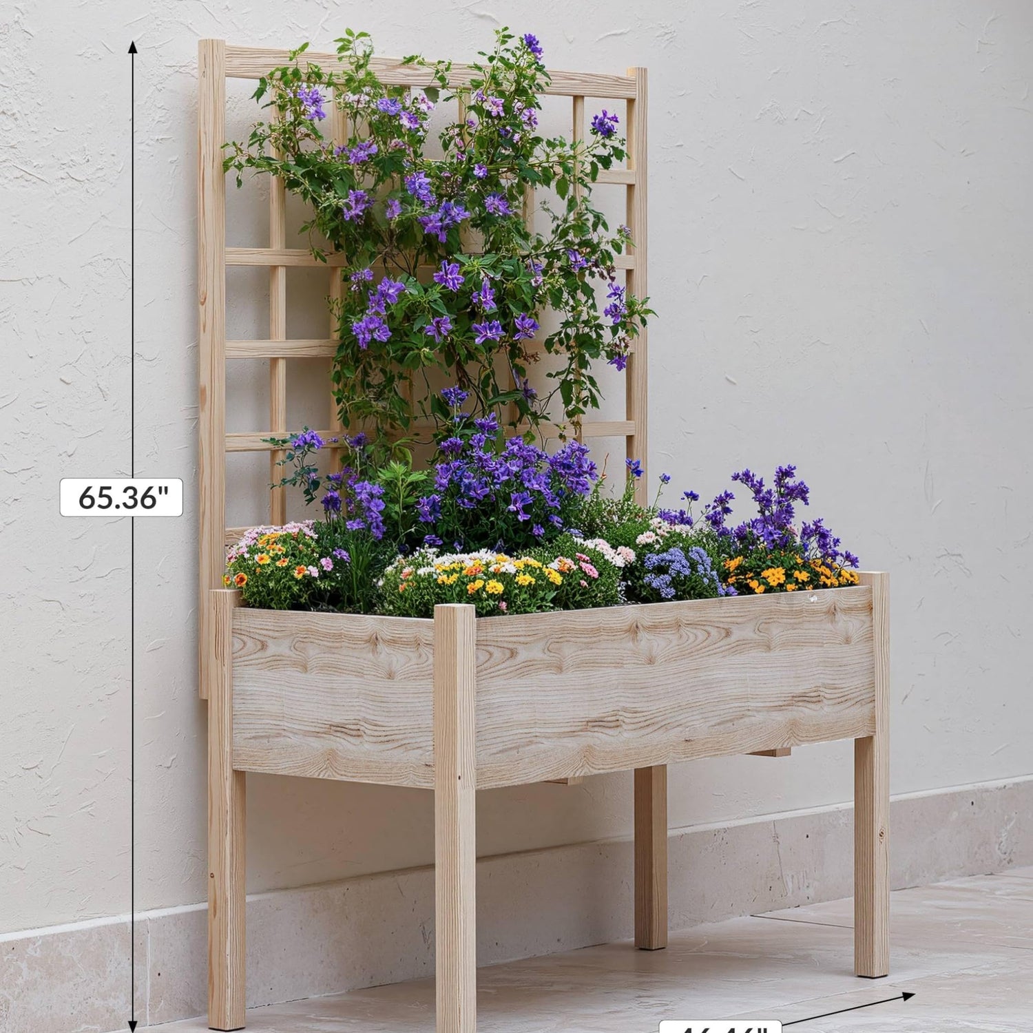 Raised Garden Bed with Legs for Outdoors, 46"x23"x65" Wooden Elevated Planter Box with Trellis, Planter Liner for Backyard, Patio, Balcony, Bed Liner for Climbing Plants, Flowers, Vegetables