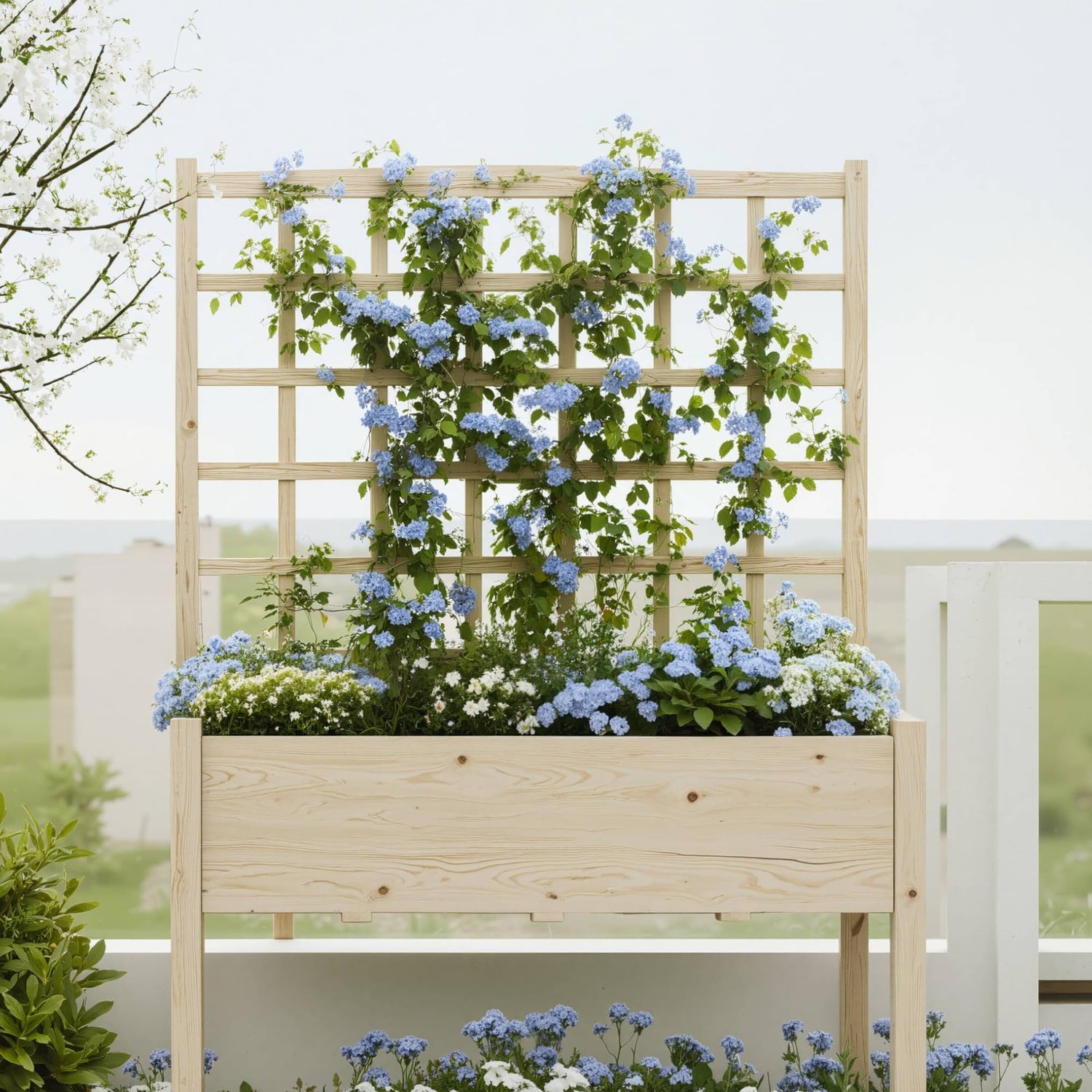 - 1,Spacious Elevated Planting System: This innovative garden planter features a generous 118cmL x 59cmW x 45cmD growing area with an additionaltall trellis, creating a complete vertical gardening solution. The deep planter box accommodates everything from root vegetables to flowering plants, while the trellis supports climbing vines like cucumbers or decorative flowering plants.