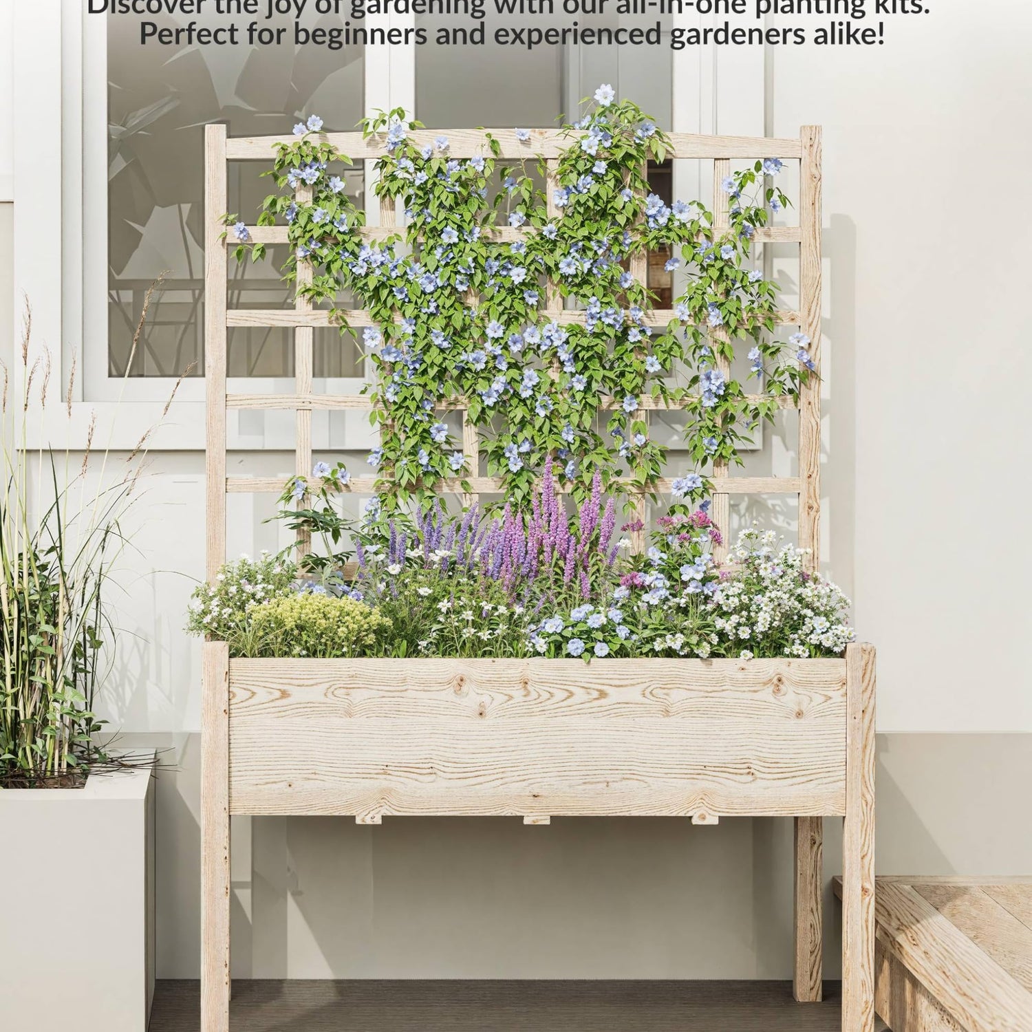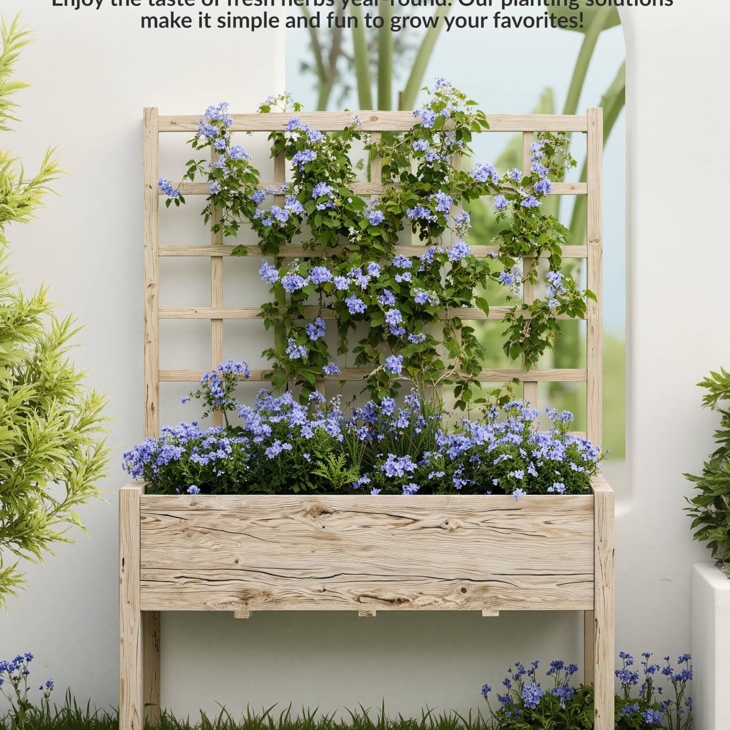 - 3,Solid Fir Wood Construction: Built with premiums 1.2" thick fir wood, this planter offers exceptional durability and weather resistance. The reinforced frame and sturdy legs support up to 386 lbs, ensuring years of reliable use. Unlike cheaper alternatives, our natural fir wood resists warping and cracking in outdoor conditions.