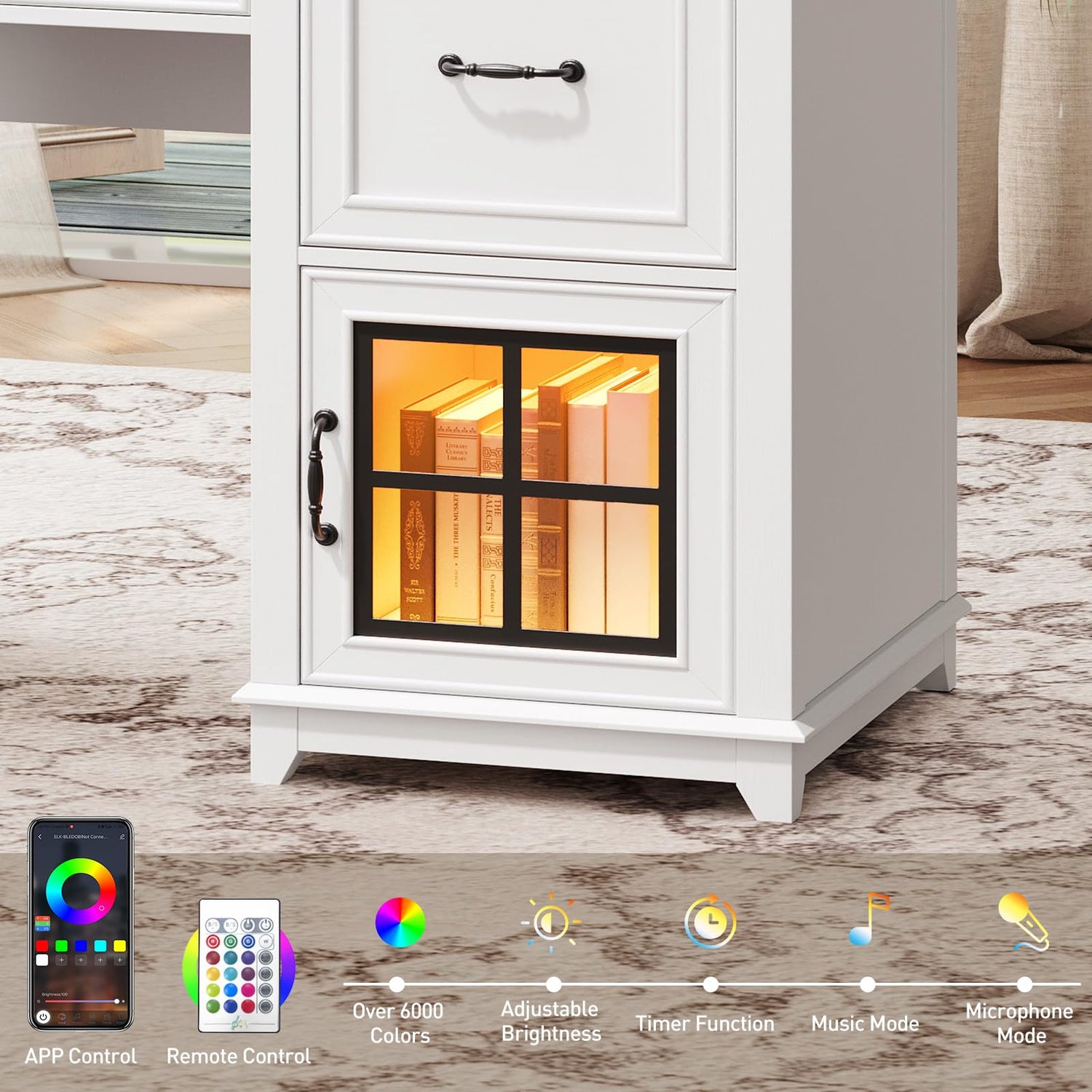 - Charging Station & LED Light: The farmhouse executive desk comes with 3 AC outlets and 2 USB ports to charge multiple devices like phones and more. The LED strip can be controlled via an app or remote, with various colors and music mode for a personalized work vibe