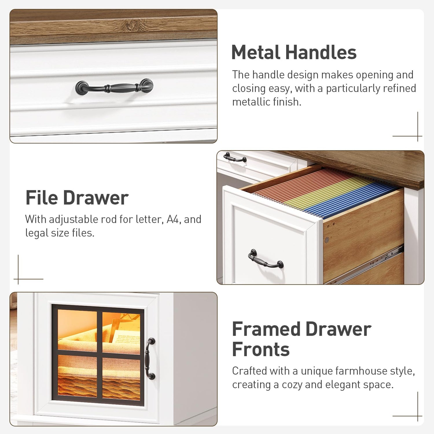 - Ample Storage: The home office desk features a spacious tabletop, three storage drawers, and a file drawer with an adjustable hanging rod to fit a4, letter, and legal-sized files. plus, two large cabinets provide plenty of space for files, books, and other essentials