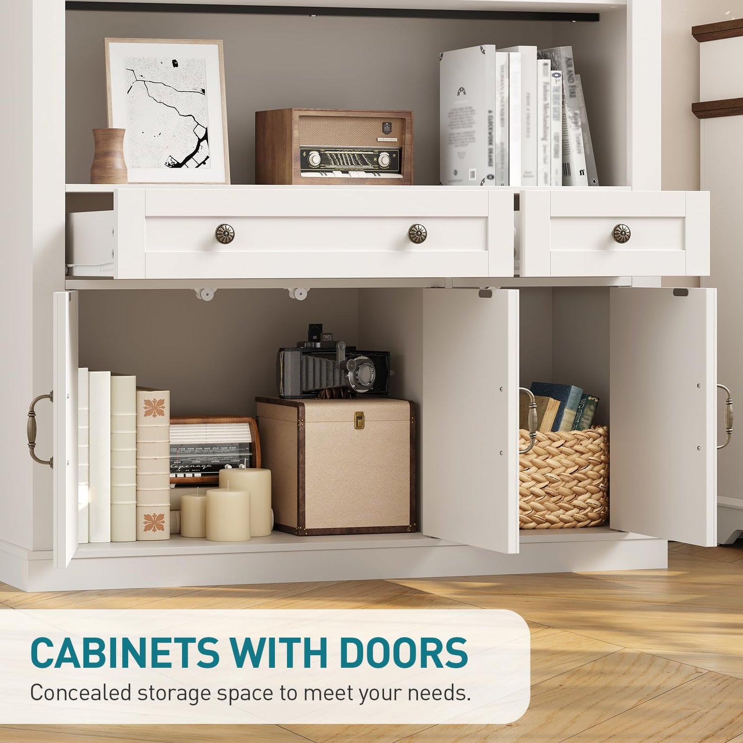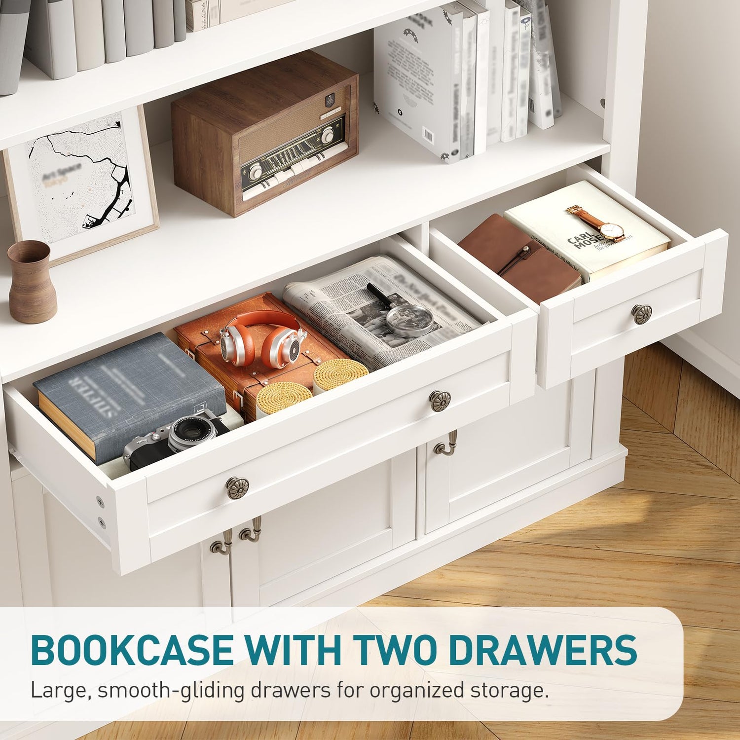- Versatile Use: Finished in a minimalist white, this bookshelf with drawers and doors seamlessly adapts to home offices, bedrooms, living rooms, and kitchens. More than a bookcase, it's a display stand or kitchen storage solution that elevates any decor, from farmhouse to modern