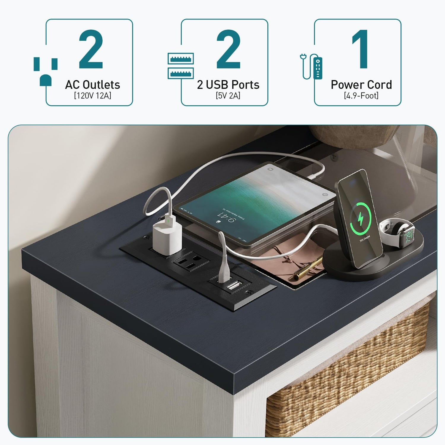 - Charging Central: Featuring 2 AC outlets and 2 USB ports, this entryway table enables the simultaneous charging of multiple electronic devices. The cable management hole at the back of this console table helps to keep cords organized and untangled