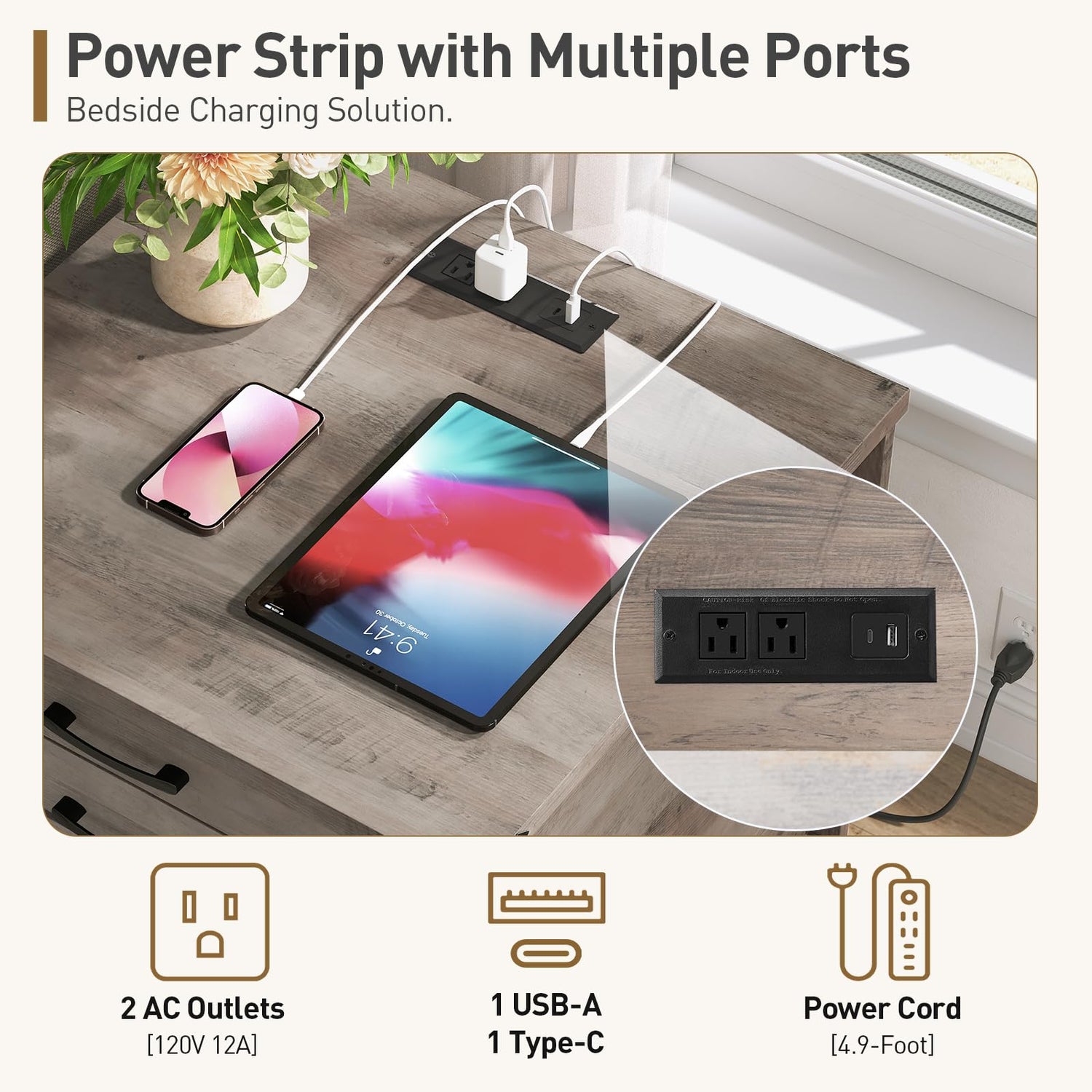 - Versatile Power Outlet: With 2 AC outlets, 1 USB-A, and 1 Type-C port, this end table with charging station is convenient for charging lamps, phones, tablets, etc. Say goodbye to the hassle of insufficient bedside outlets; charge multiple devices easily