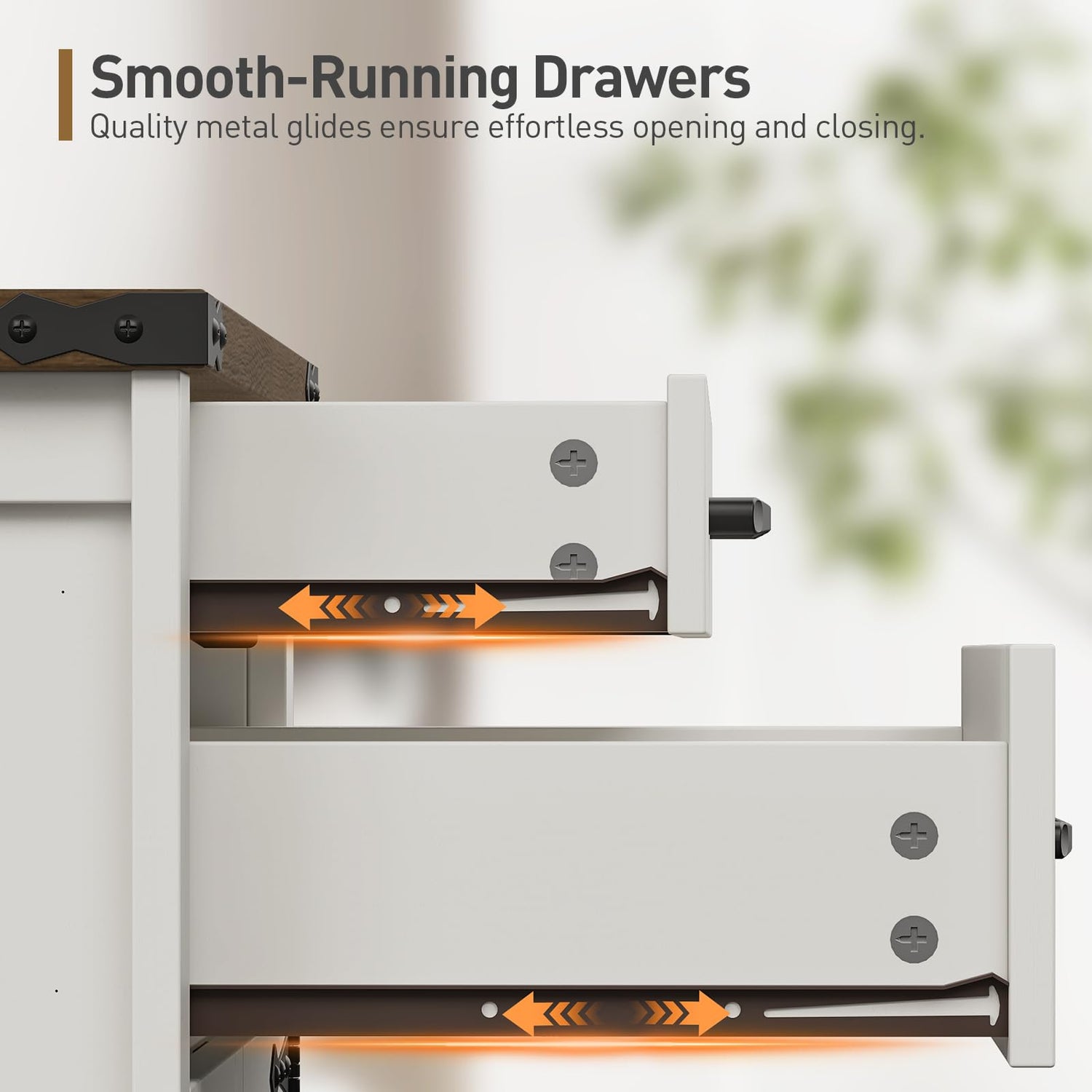- Robust and Enduring: Made of premium particleboard, this end table with drawers has a 1" thick top, a stable base, sturdy metal handles, and decorative corner protectors. It is robust and has excellent load ability, exuding a sense of solid elegance