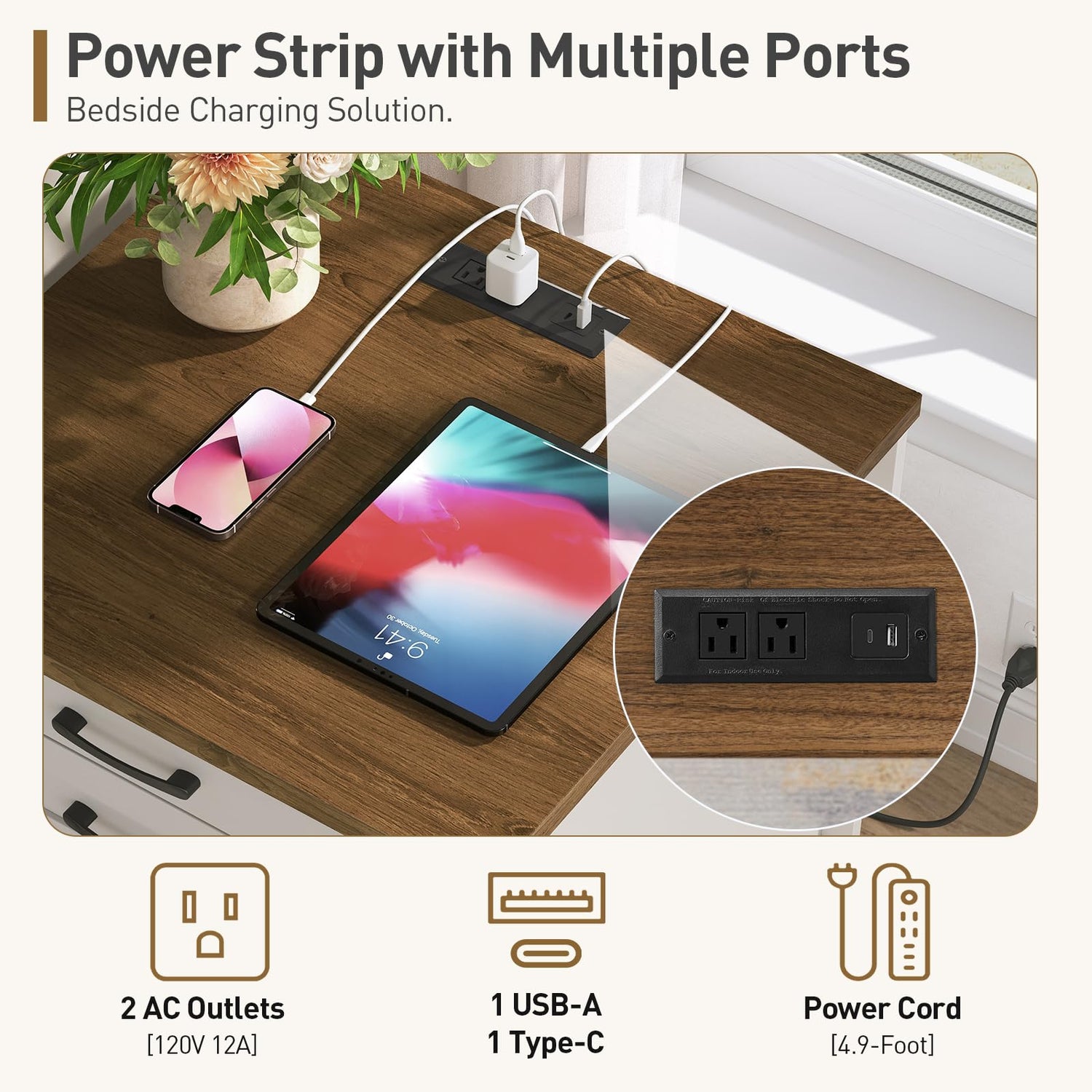 - Versatile Power Outlet: With 2 AC outlets, 1 USB-A, and 1 Type-C port, this end table with charging station is convenient for charging lamps, phones, tablets, etc. Say goodbye to the hassle of insufficient bedside outlets; charge multiple devices easily