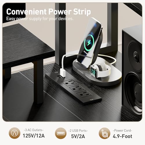 - Built-in Power Outlets and LED Lights: With 3 AC outlets and 2 USB ports, our corner computer desk provides easy power access for your devices. The LED light strip boasts multi-color settings and dynamic modes, creating an immersive atmosphere whether you're gaming or enjoying the night