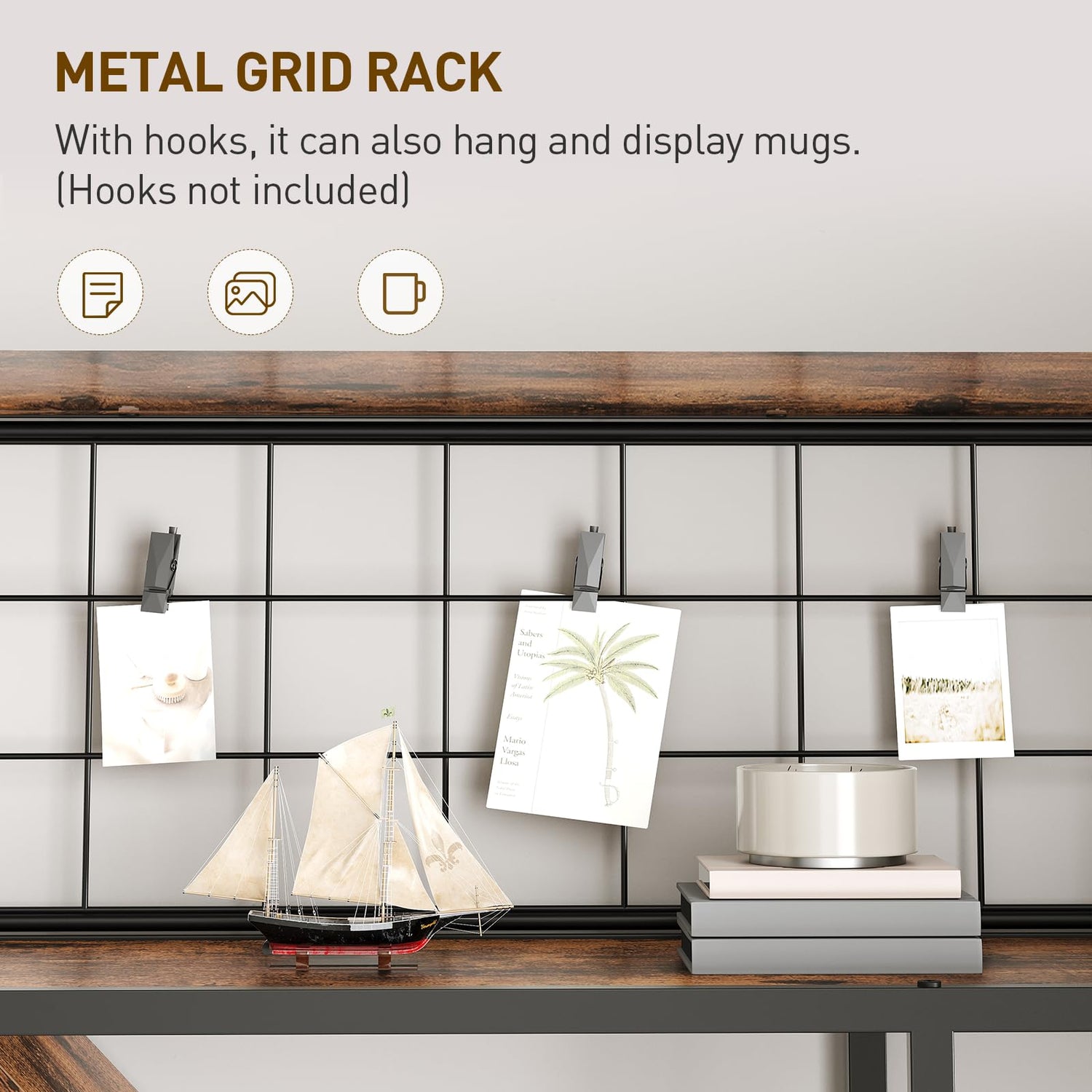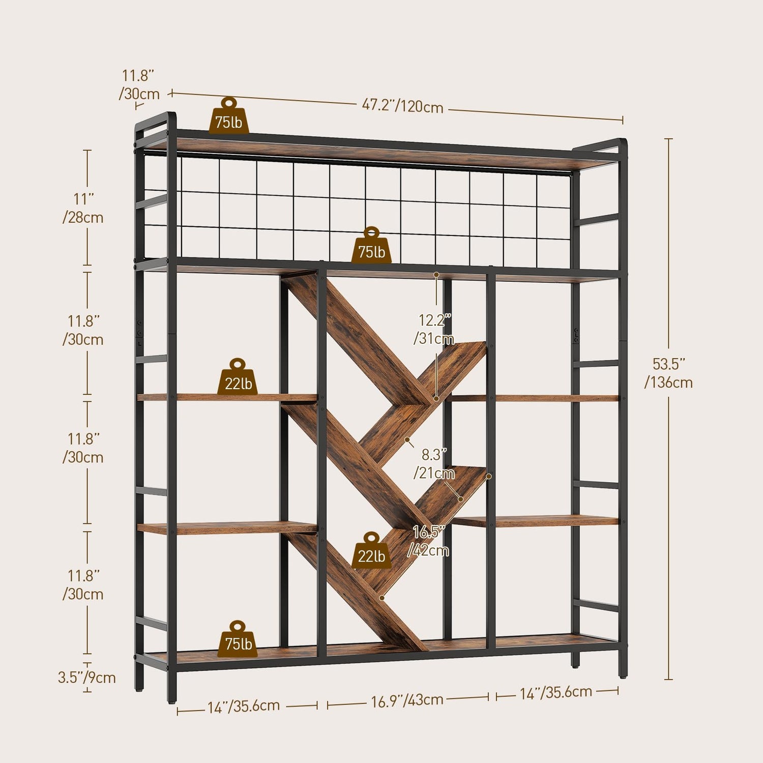 - From Floor to Ceiling: This open shelf bookcase boasts a unique Y-shaped bookshelf inside, adding a touch of personality while optimizing vertical space. Plus, the metal grid allows you to hang keys, tools, or display mugs, freeing up more counter space