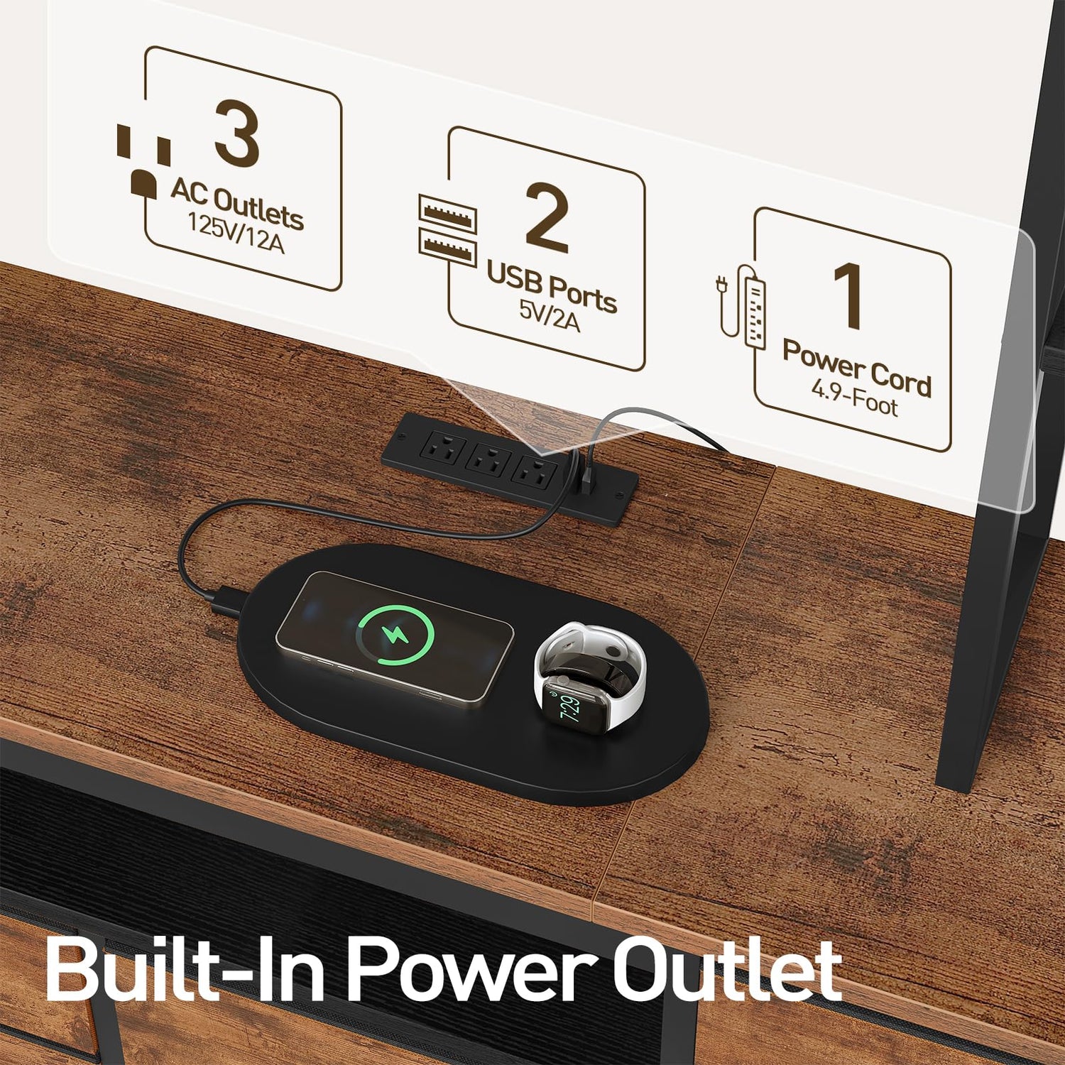 - LED Lighting and Convenient Charging: Equipped with 3 AC and 2 USB ports, this media TV console table allows easy charging of your devices. The LED lights can be adjusted via remote or app, creating a cozy and inviting atmosphere in your living room