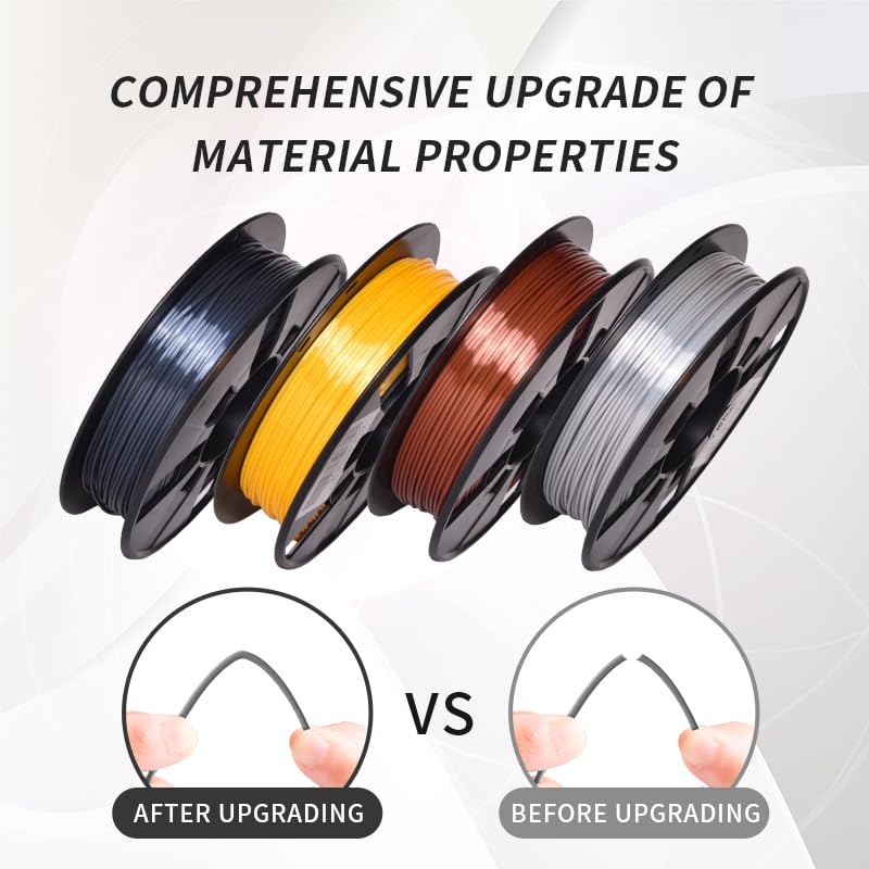 - 【Tangle Free & No Plugging】:Silk filament no clogging, no tangle, no bubble, extremely high success rate, resulting in printed parts that have an outstanding surface finish and are highly precise.