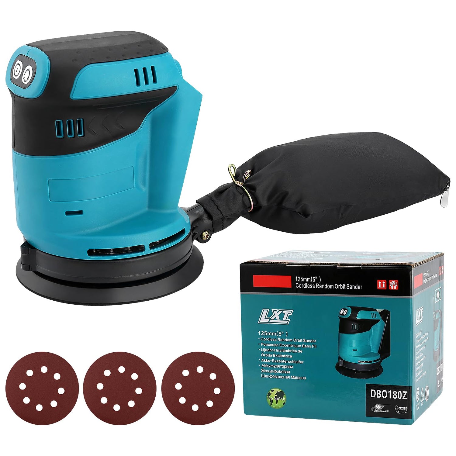 Random Orbit Sander for Makita 18V Battery, 5-Inch 14000RPM Cordless Electric Orbital Sander with 3 Various Speeds, Palm Sander with 3 Pcs Sandpapers & Dust Bag, Perfect for Woodworking(Tool Only)