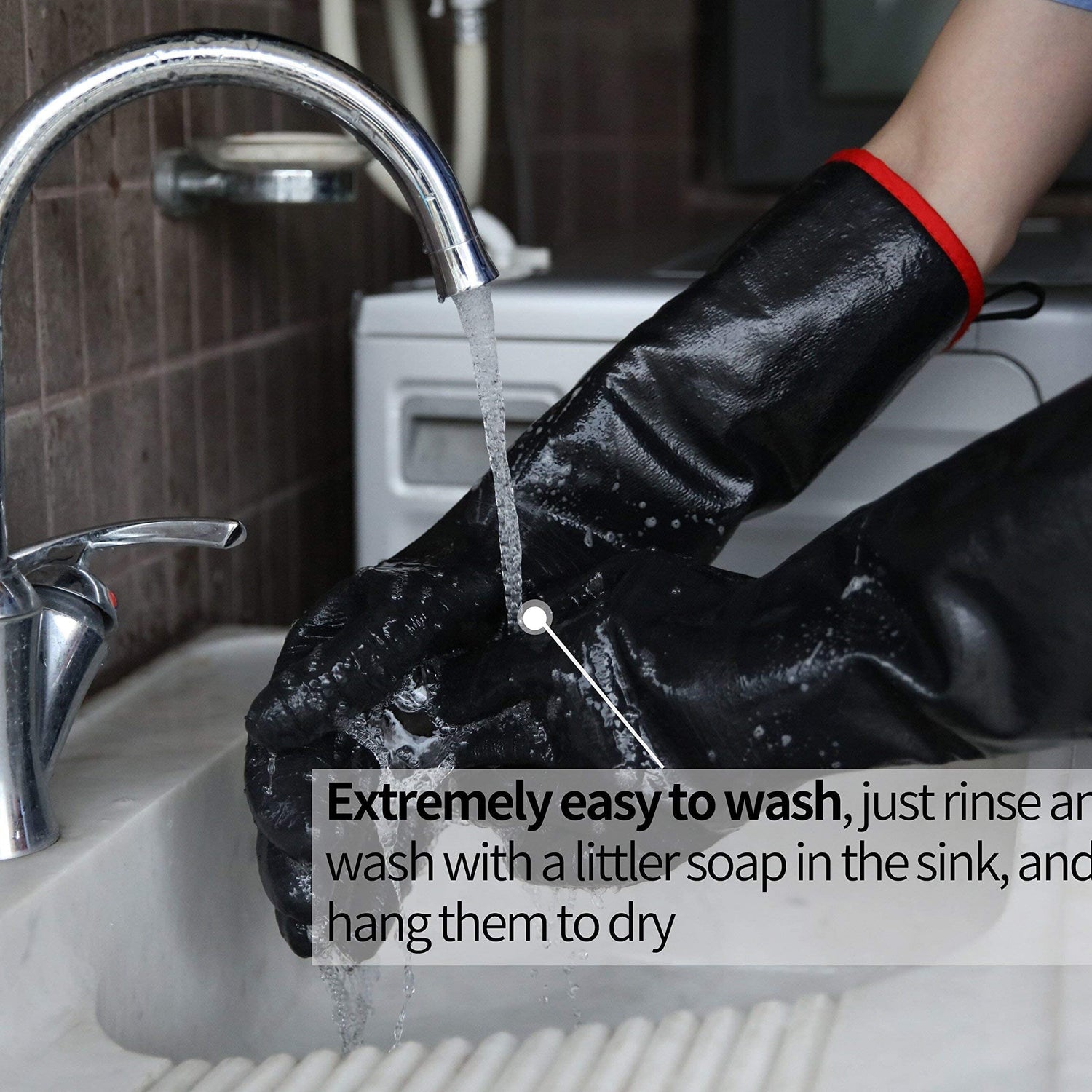 - Effortless Cleaning Experience: The flexible waterproof neoprene coating on these gloves resists heat, grease, oil, water, and even chemical liquids. Simply wear the gloves, wash them with a little soap, and hang them to air dry for an optimal, stain-free, oil-free experience!