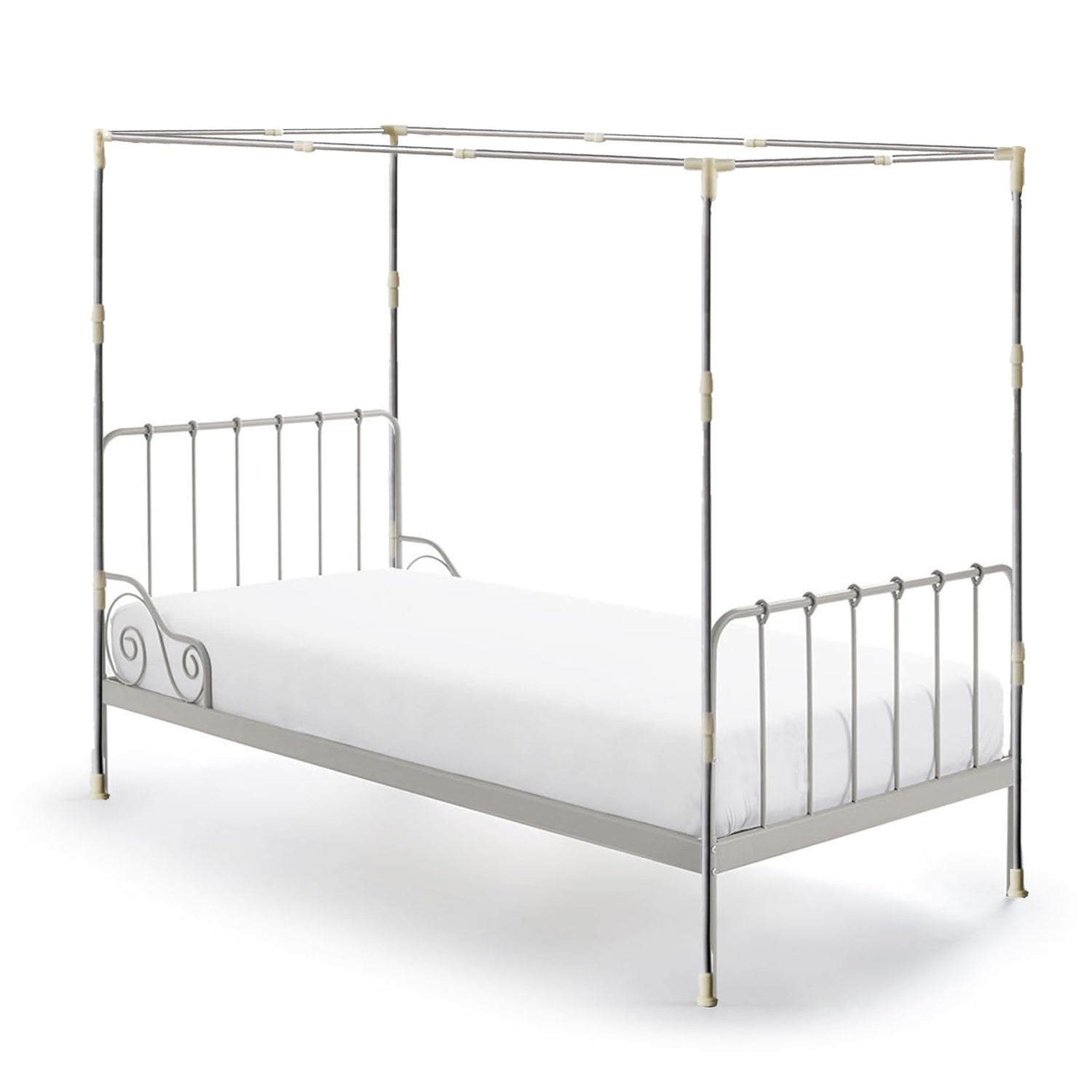 RAREFTI Canopy Bed Frame Twin Size Adjustable Bed Canopy Post Poles, Stainless Steel Bed Canopy Frame Poles for Four Corner Bed Platform Bed Bunk Bed, Silver(Canopy Frame Only)