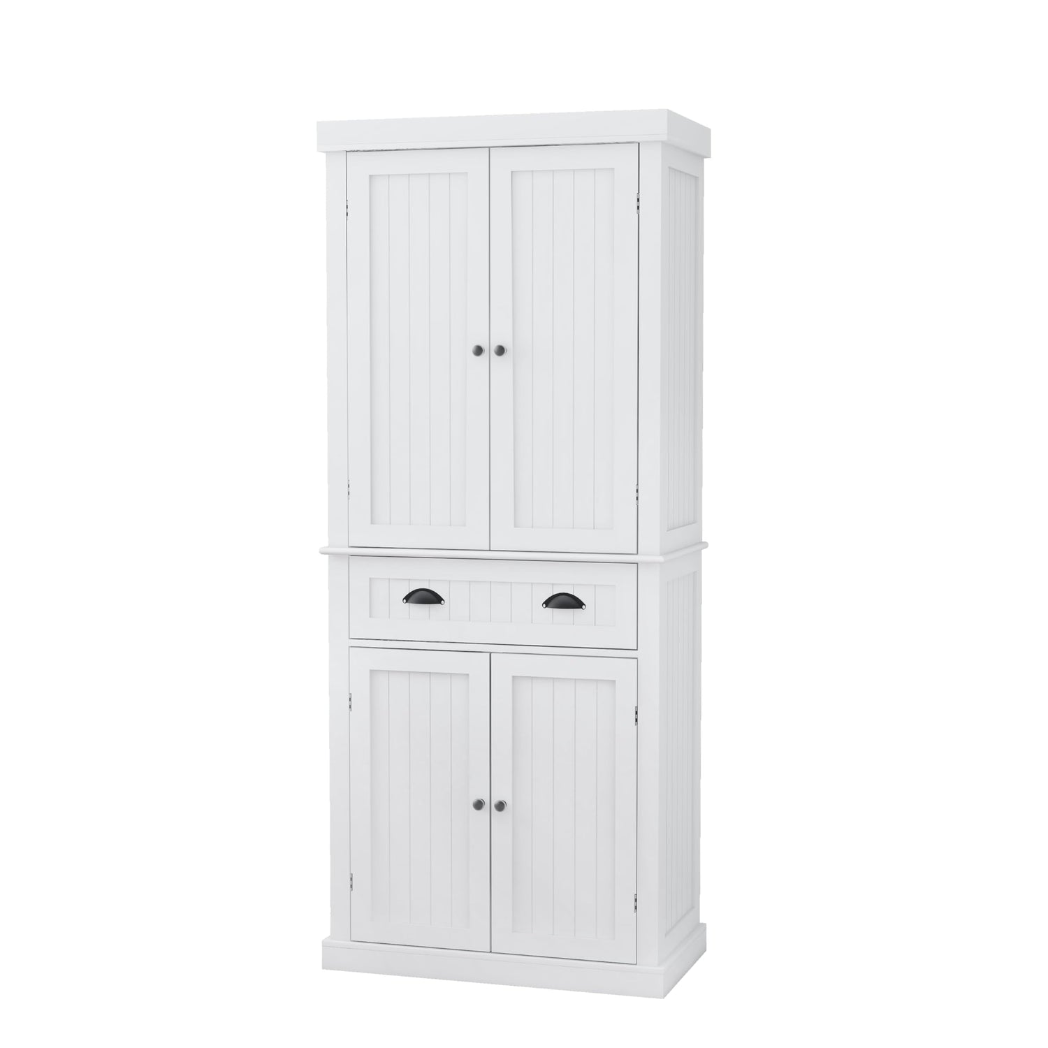 RASOO 72" Pantry Cabinets Freestanding Food Kitchen Pantry Storage Cabinet Cupboard with Drawer and Adjustable Shelves,White (Vertical bar Drawing Slot)