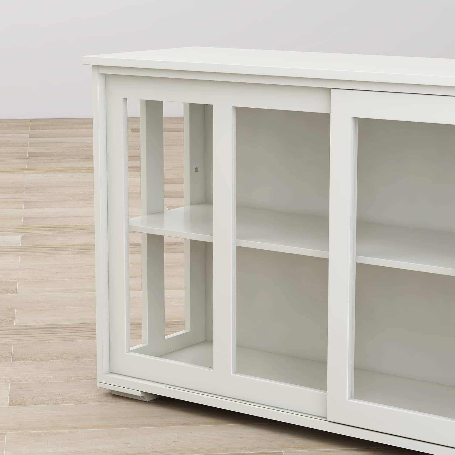 RASOO Kitchen Storage Cabinet Antique Stackable Buffet Storage Sideboard Adjustable Shelf Inside Credenza Cupboard with Transparent Glass Sliding Door (White)