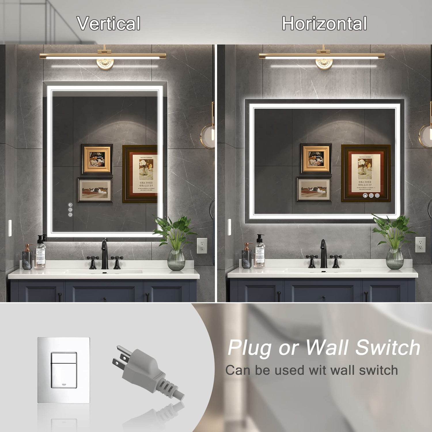 - 【2 Ways to Install】The wall LED bathroom mirror can be installed by wall switch or hard-wired. Wall switch installation is easier with clear manual instructions and videos. And hard-wired installation is recommended to be done by a professional electrician.