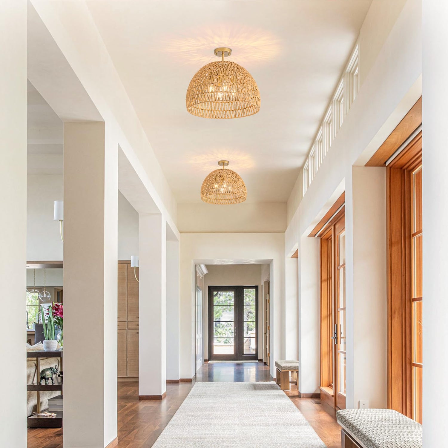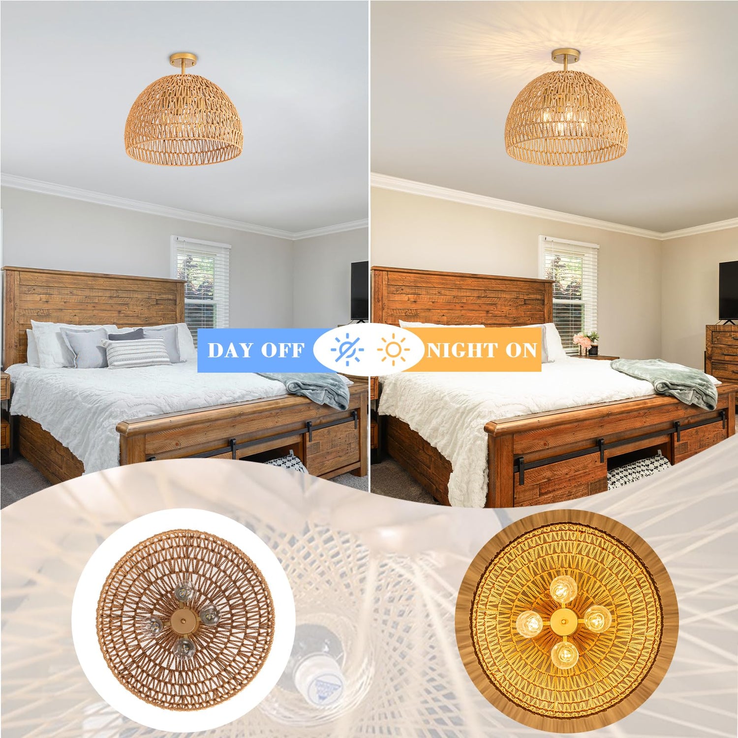 - 【Hand -Woven Rattan Light Fixture】This boho flush mount ceiling light fixture is designed with metal canopy and hand woven lampshade which is crafted of natural rattan, you do not have to worry about aging or color fading problems. This hand-woven craftsmanship makes rattan light fixtures ceiling unique.