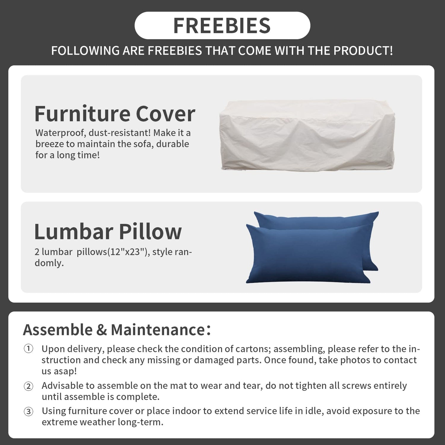 - Packaging and Assembly: the outdoor couch is packed in 1 box with clear instructions and all necessary hardware for smooth assembly, also assembly demo video is available