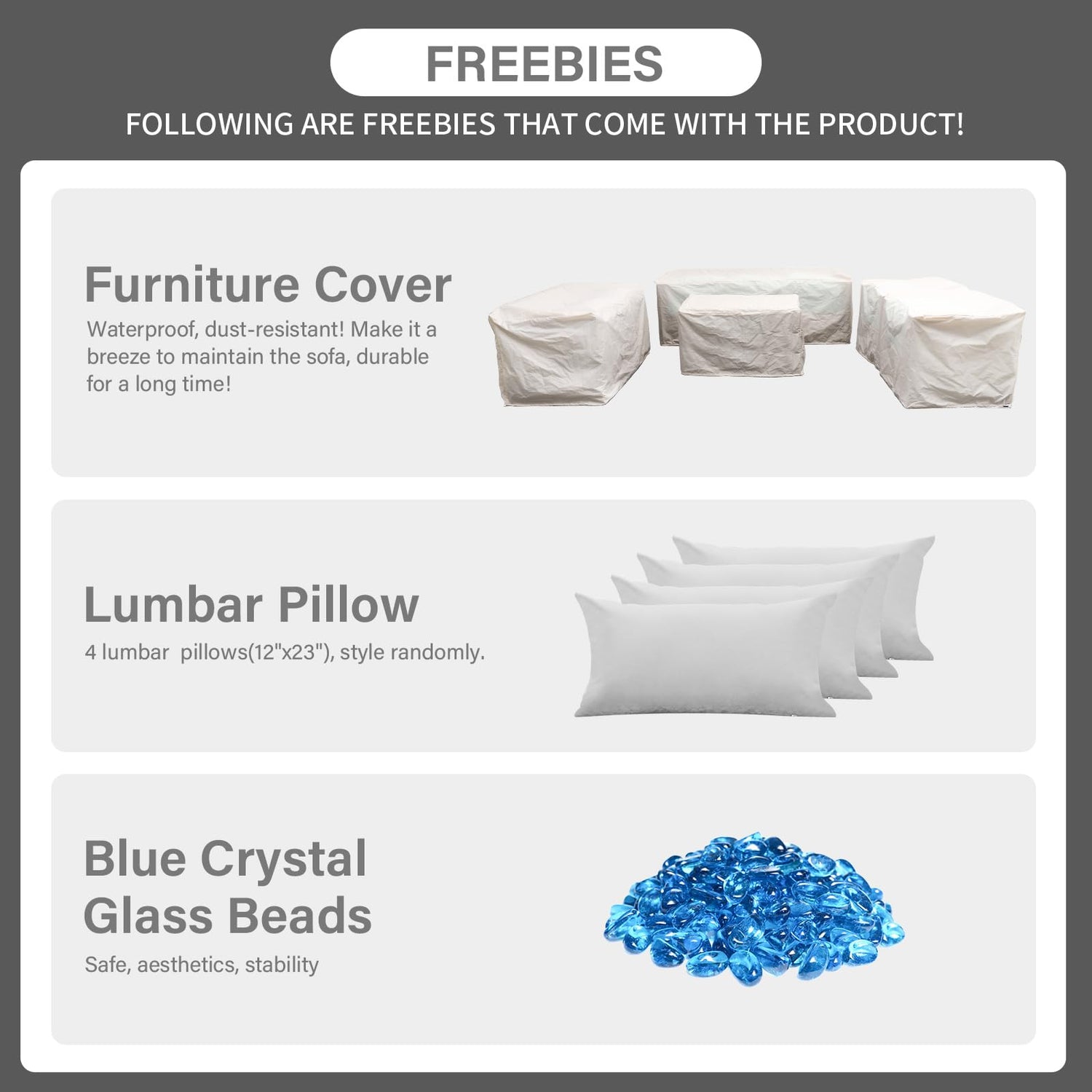 - Assembly and Maintain: the outdoor patio set is packed in 4 boxes, with clear instructions and all necessary hardware for speedy, smooth assembly, also assembly demo video is available; with the waterproof covers, fearless dust, rain, and sun, superbly ensure to last a long time