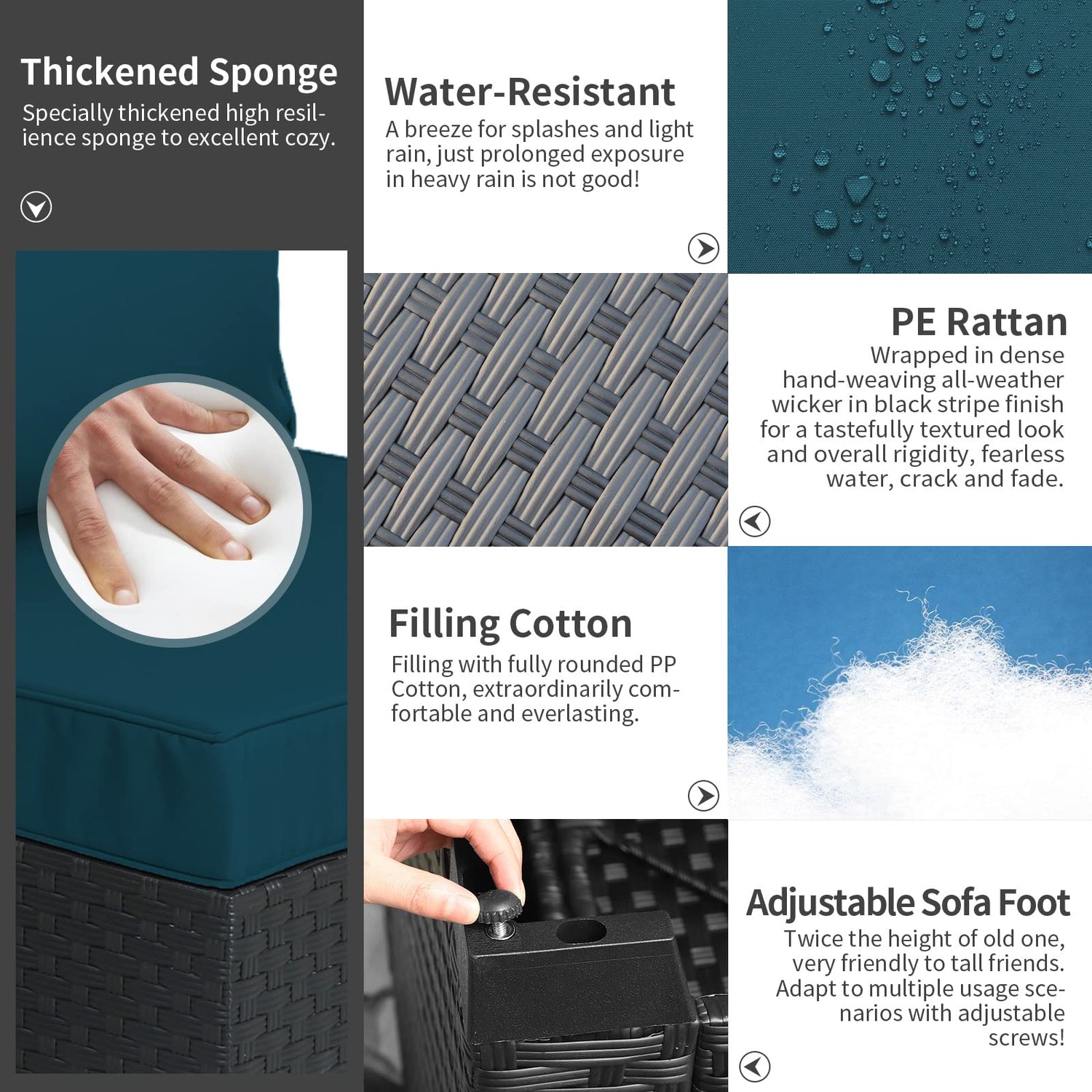 - Highly Adaptable: Bring versatile and interesting style and seating space with this outside furniture with differentiated design, distinctive outdoor couch, ottomans and configuration. Graceful, casual style that doesn't compromise on comfort and durability, suitable for any decorative fashion and scene. The patio storage table allows storing multiple items for easy access anytime, greatly enriching your outdoor life.
