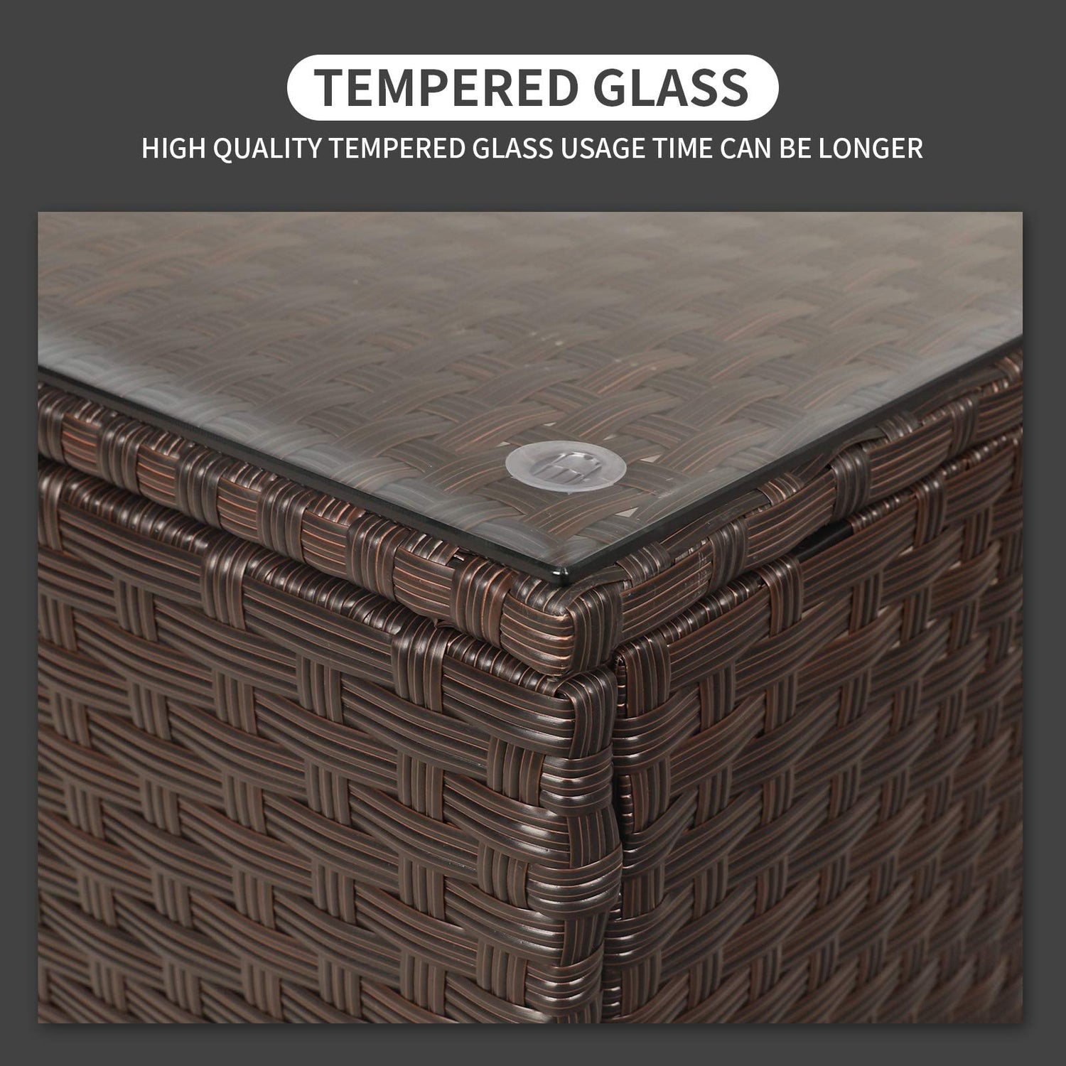 Rattaner Patio Furniture Wicker Coffee Table Outdoor Garden Square Side Table with Tempered Glass Top Brown