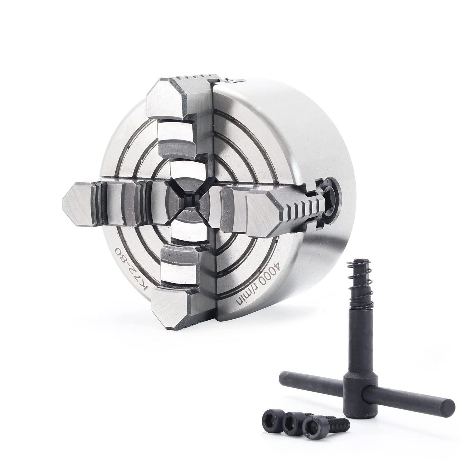 RATTMMOTOR 4-Jaw K72-80mm 3.15 Inch Independent Reversible Metal Lathe Chuck with Wrench for CNC Router, Lathe, Turning Machine