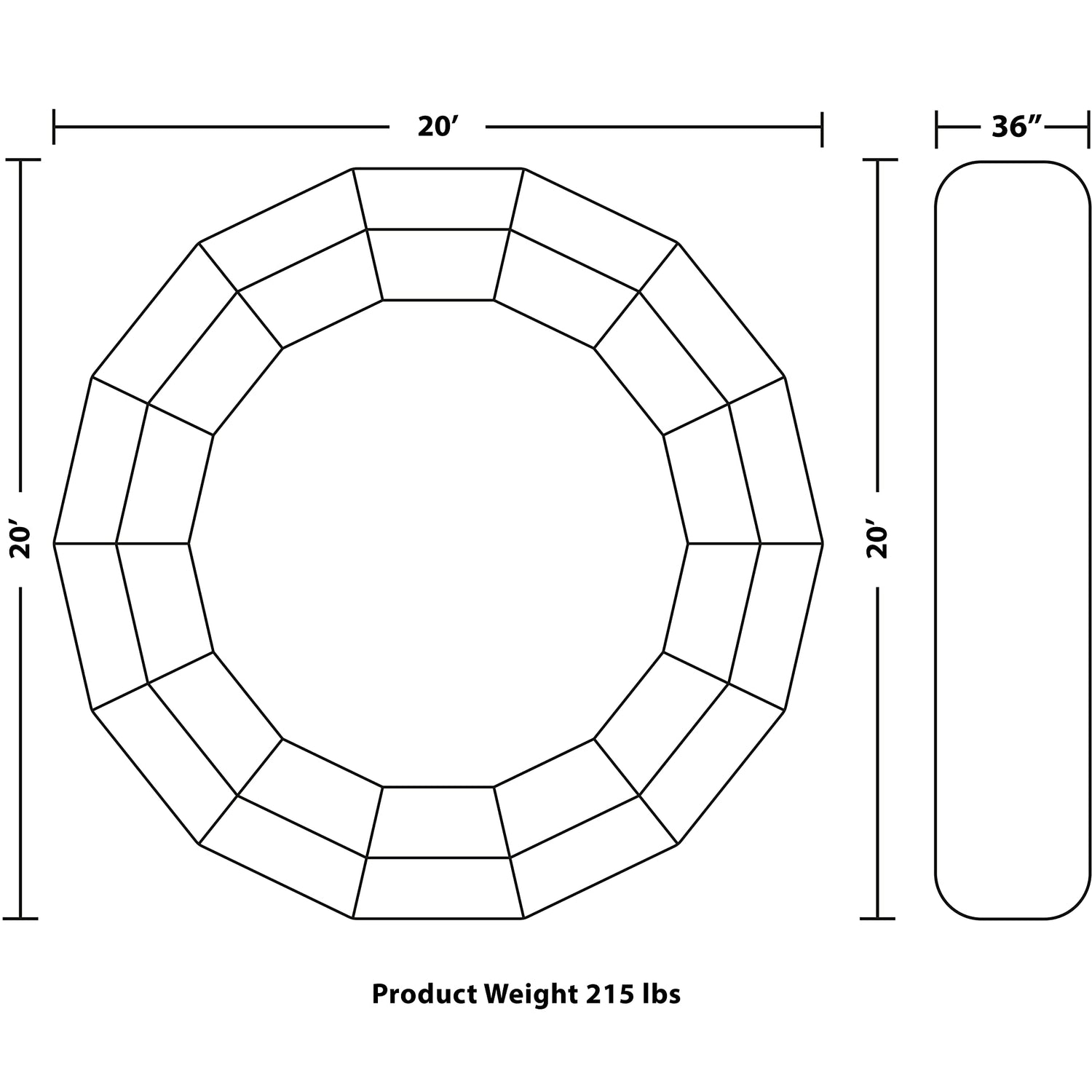 • AJ200 water trampoline: 185 lbs.; (1,050 lbs. max)