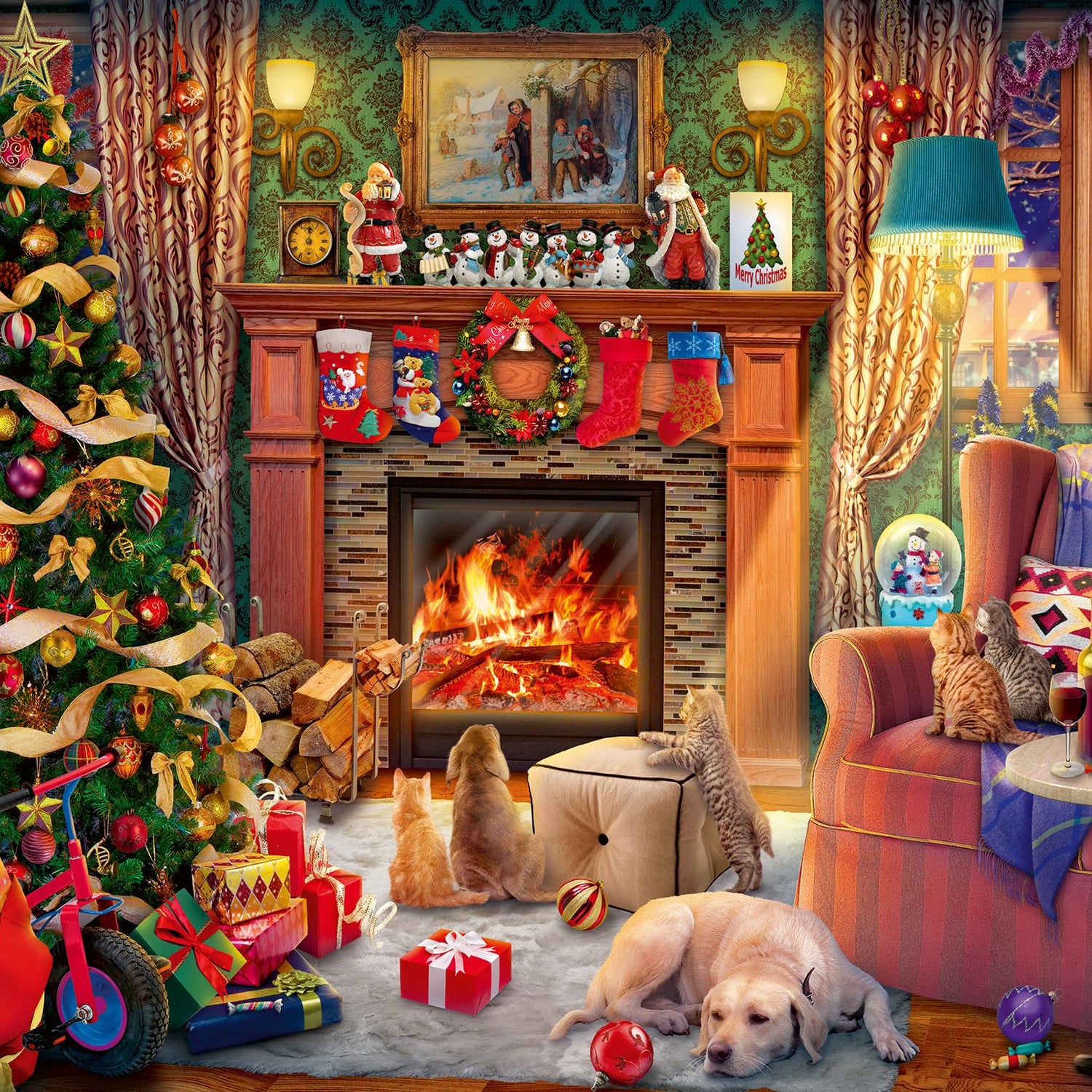 - [About This 1500pc Puzzle] Oh, there’s no place like home for the holidays, especially when enjoying fun family time puzzling our cozy scene of furry friends on “Christmas Eve”!