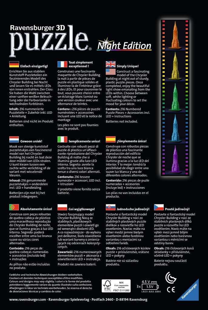 Ravensburger - Chrysler Building 3D Puzzle - Night Edition - 216 Piece 3D Jigsaw Puzzle for Kids and Adults - Easy Click Technology Means Pieces Fit Together Perfectly