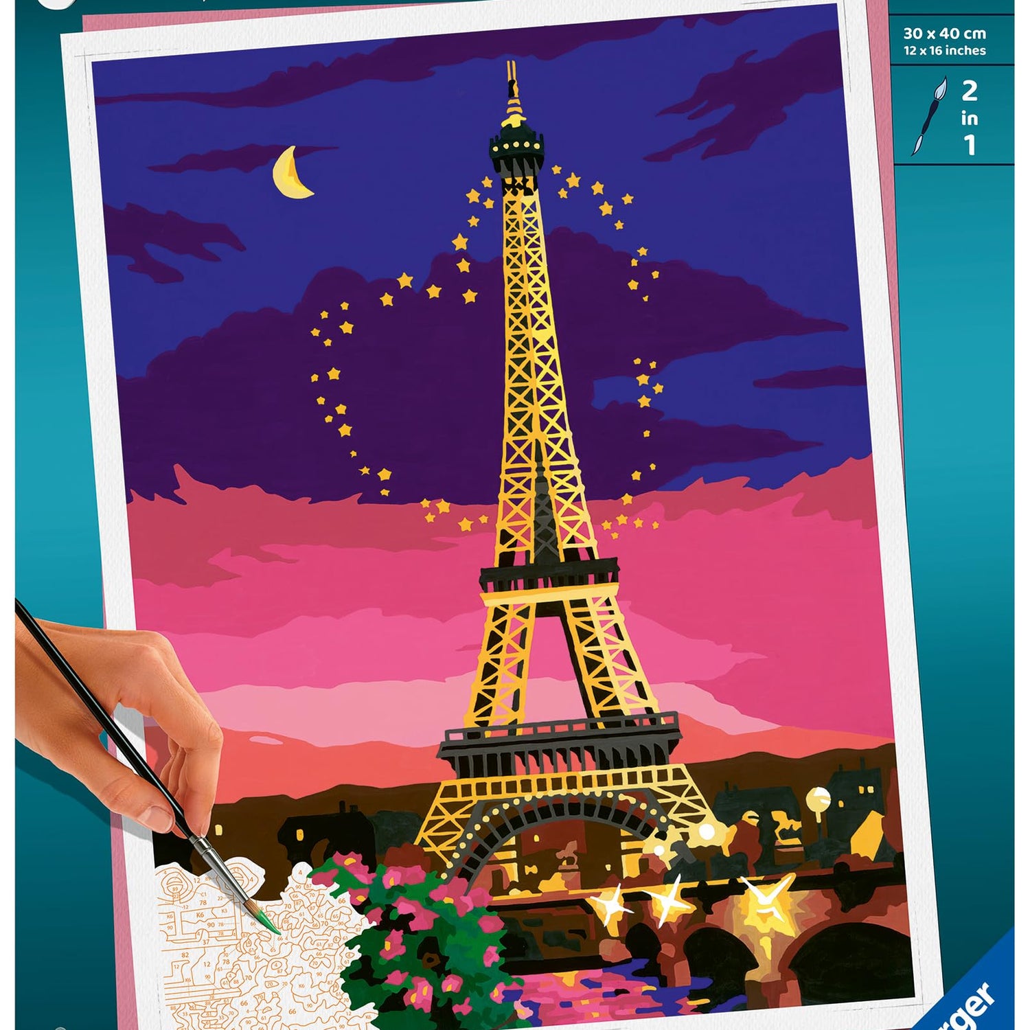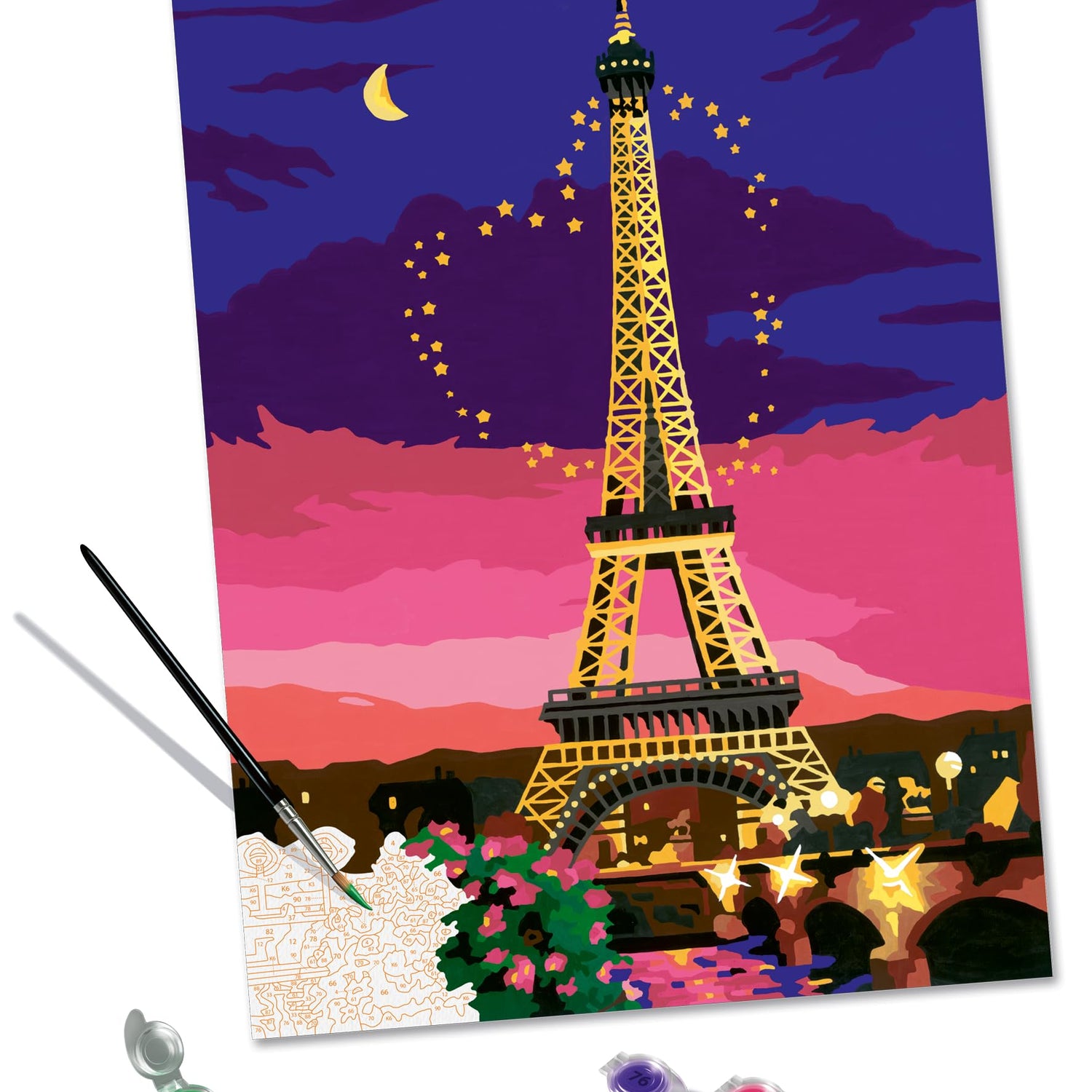 - About this image: Journey to romantic Paris where the Eiffel Tower glows in the “City of Love” in this colorful and inviting CreArt Painting by Numbers set!