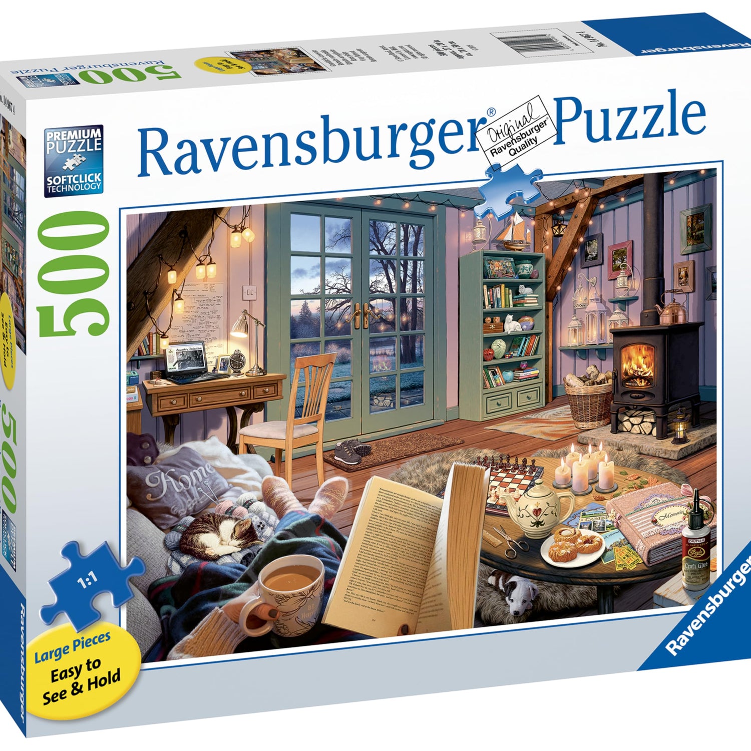 Ravensburger Cozy Retreat 500 Piece Large Format Jigsaw Puzzle - Premium Winter Puzzle for Adults | Jigsaw Puzzles 500 Pieces | Relaxing and Fun Activity | Ravensburger Puzzle Quality