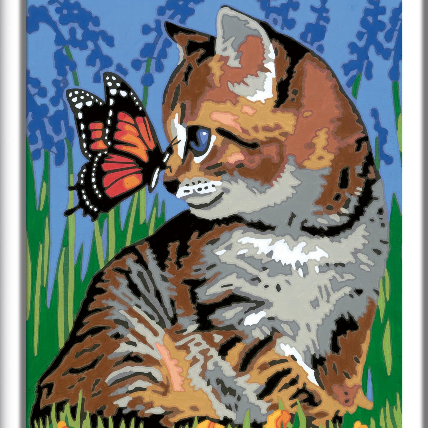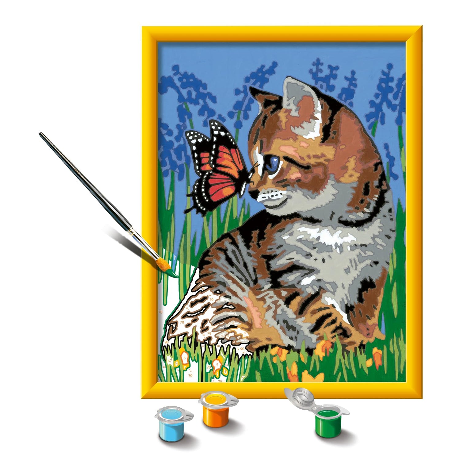 - COMPLETE ART SET: This kit comes inclusive of water-based acrylic paints in resealable pots, finishing gloss, double-tipped brush, paint holder palettes, cardboard canvas, painting reference guide, straightforward instructions, and picture hanger