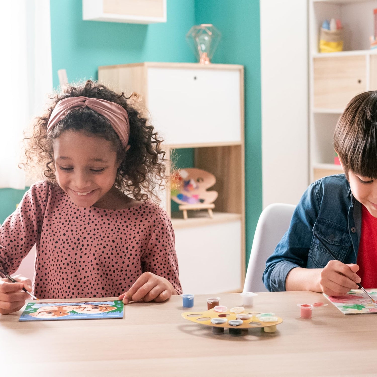 Details: Watch your young one dive right into this arts and crafts project as they create these “Delightful Dolphins” with our CreArt Painting by Numbers set! Creating a painting all by themselves will go swimmingly with this “Delightful Dolphins” CreArt Painting by Numbers set! Kids can relax with this fun and satisfying paint-by-number kit, complete with everything needed to make and display their very own masterpiece. Painting is a snap, with color-outlined sections and matching, odorless acrylic paints to ensure picture-perfect results. Finish in about 4 hours, let dry, then use the included frame to proudly display your budding artist’s talent! Looking for a fun activity that keeps your kids off their screens? Help them discover their inner artist with CreArt, our high-quality Painting by Numbers sets! With kid-friendly images designed to match abilities, budding artists can enjoy completing their very own painting in just a few hours. Easy-to-see colored outlines distinguish each section, helping kids achieve great results. Painting is a fun, creative activity that can also improve dexterity and concentration while providing a sense of satisfaction! CreArt contains everything children need to create their painting: a high-quality, thick painting board; 10 water-based, opaque acrylic paints in numbered pots; pallet to hold the easy-open/resealable paint pots steady; durable, fine-point paintbrush; easy-to-follow guide sheet; and frame to display their finished artwork. Makes a great gift!