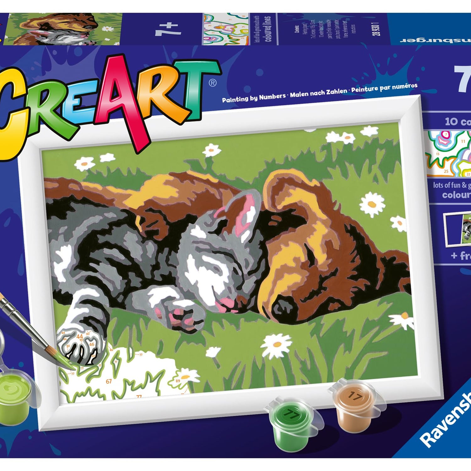 Ravensburger CreArt Sleeping Cat & Dog Paint by Numbers Kit | Easy-to-Use for Kids | Perfect for Home Decor | Ideal Gift for Aspiring Artists - Ages 7 & Up