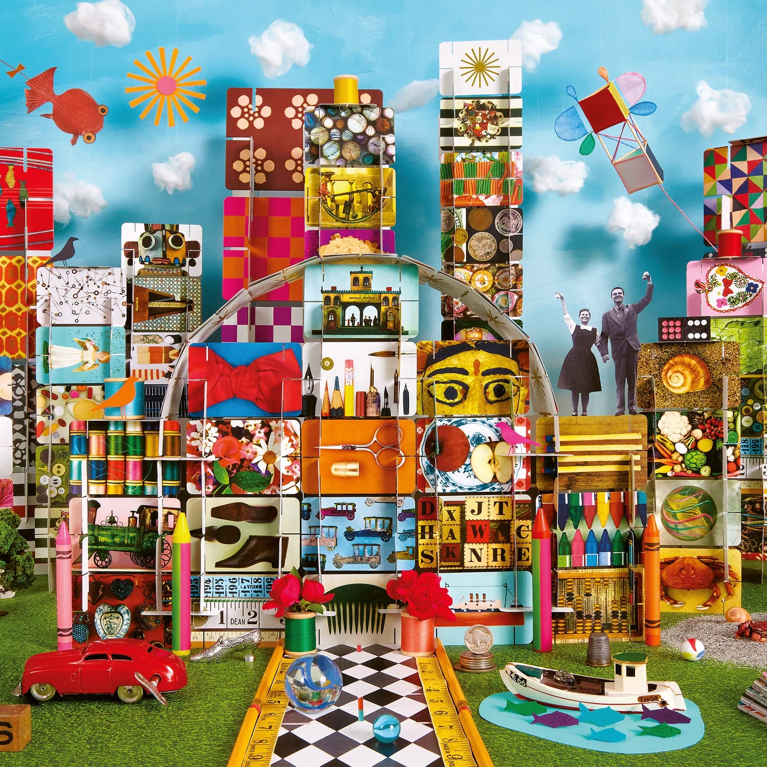 Details: Immerse yourself in the uncommon beauty of the ordinary with the Ravensburger Eames House of Cards Fantasy Puzzle. This 1500-piece jigsaw puzzle, designed by renowned collage artist Shelley Davies, is a unique blend of artistry and fun that isn't just for kids. Each piece is crafted with precision using Ravensburger's Softclick Technology, ensuring a perfect interlocking fit for a seamless assembly. The captivating imagery and vibrant colors bring to life the extraordinary in the everyday, making the puzzling experience truly delightful. The puzzle is made with materials sourced from well-managed forests and recycled sources, reflecting our commitment to sustainability as certified by the Forest Stewardship Council (FSC). This brain game is perfect for all ages, offering extended entertainment and challenge, and makes an excellent gift for any occasion. Enjoy a premium puzzling experience with Ravensburger, the bestselling puzzle brand worldwide. Measures approximately 31.5 x 23.5 inches (80 x 60 cm) when completed.