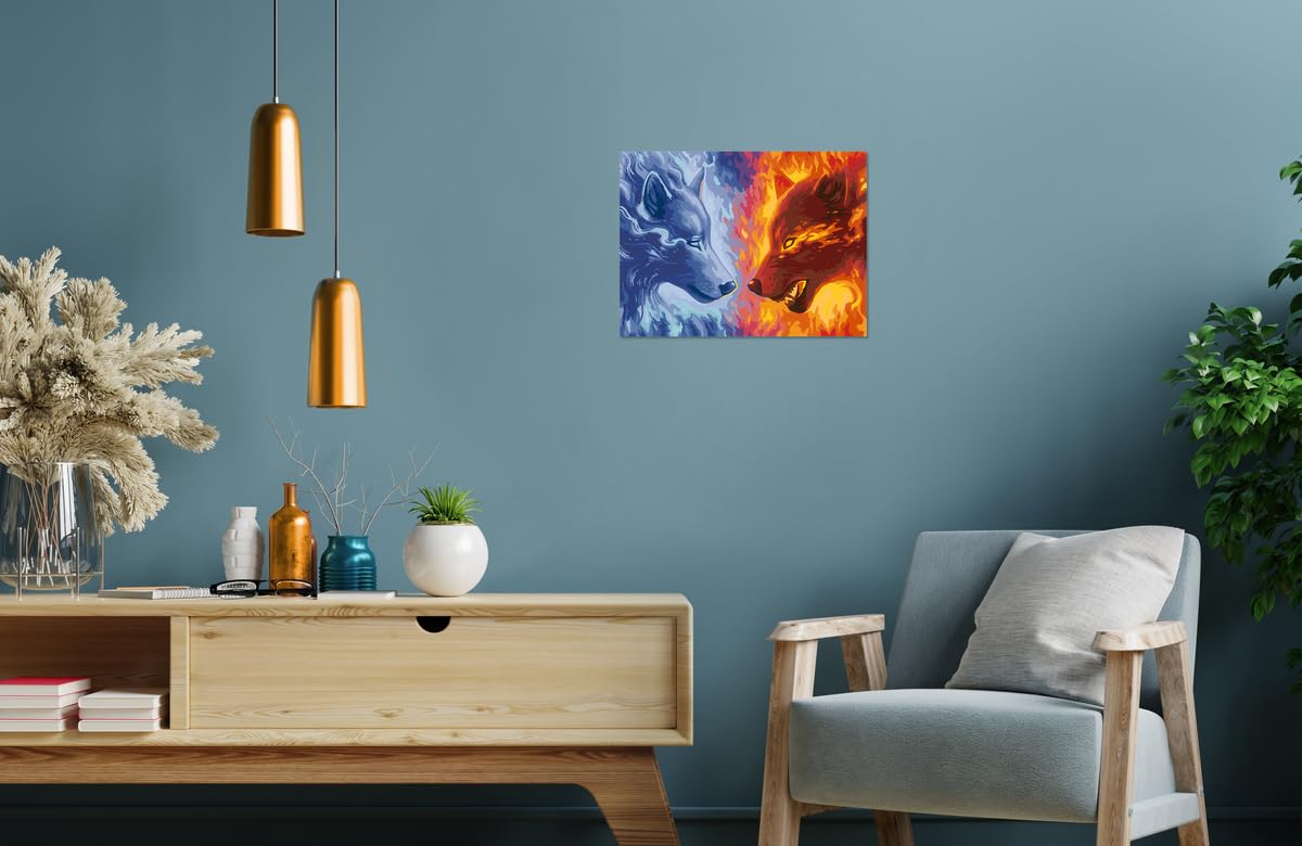 - About this image: Whether you’re running hot or cold, spend time creating “Fire & Ice” wolves and feel the tension ease with this CreArt Painting by Numbers set!