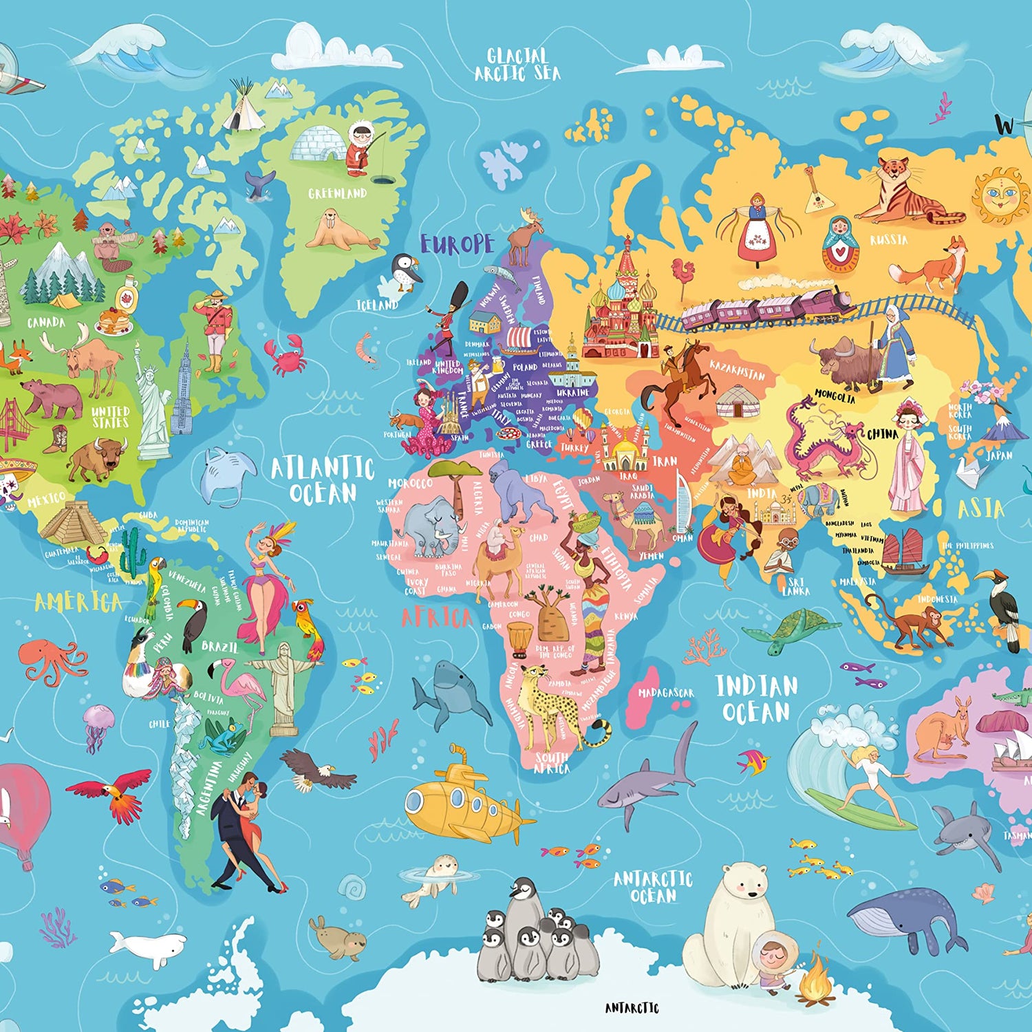 Ravensburger Map of The World 100 Piece XXL Jigsaw Puzzle forKids - | Unique Piece Design | Anti-Glare Surface | Skill-Building, Fun Activity | Amazon Exclusive