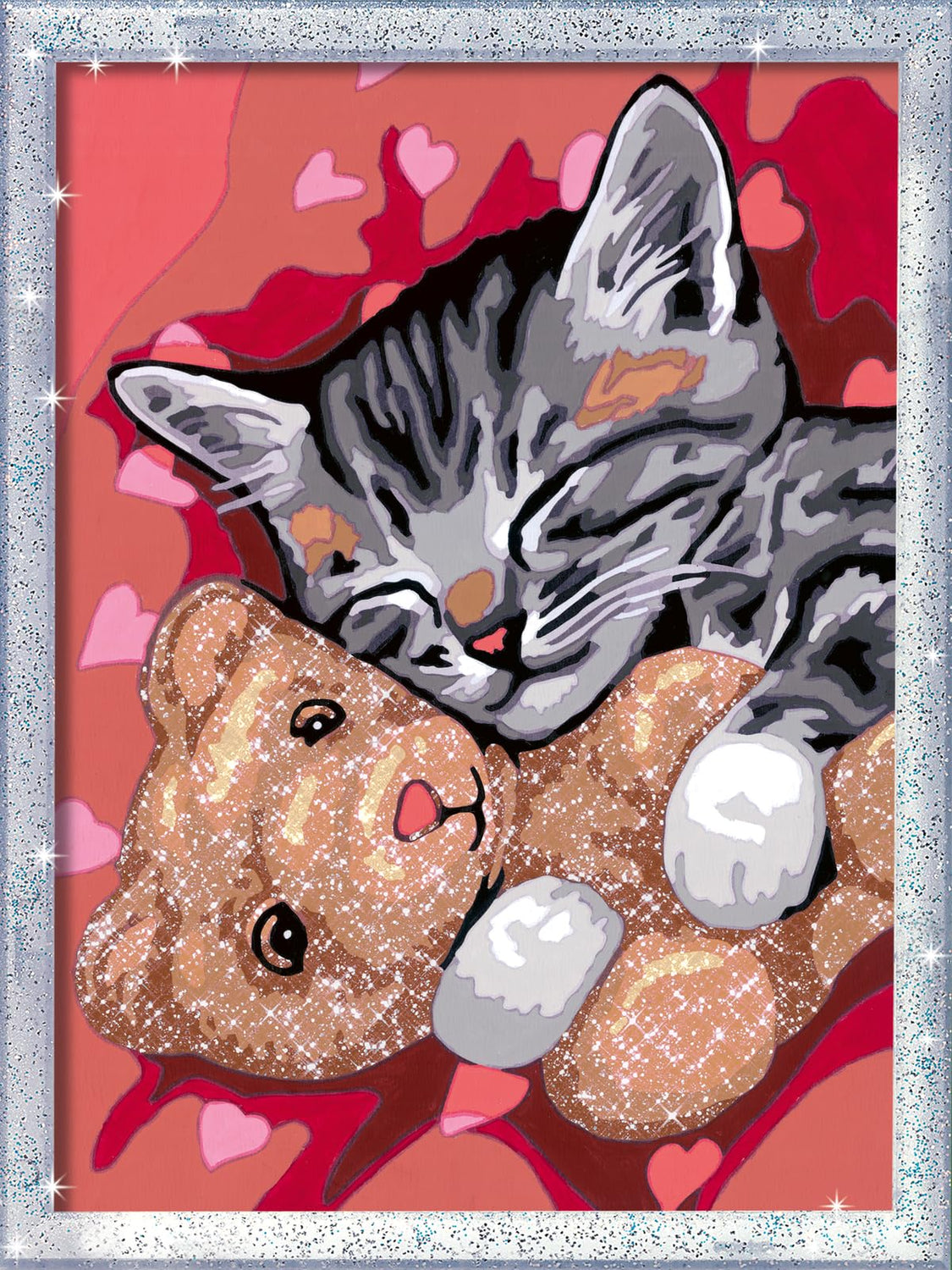 Details: This sweet kitty is sure to bring a smile to your child as they enjoy some calming time with this “Peaceful Kitten” CreArt Painting by Numbers set! Your child is sure to welcome some quiet time creating this sparkling teddy bear and cuddly “Peaceful Kitten” CreArt paint-by-numbers kit! Fun and relaxing, the set comes complete with everything needed to make and display their very own masterpiece. Success is simple, with color-outlined sections and matching, odorless acrylic paints to ensure picture-perfect results. Finish in about 4 hours, let dry, then use the included frame to proudly display your budding artist’s talent! Looking for a fun activity that keeps your kids off their screens? Help them discover their inner artist with CreArt, our high-quality Painting by Numbers sets! With kid-friendly images designed to match abilities, budding artists can complete a painting in just a few hours. Each section is outlined in its paint color to ensure great results. Painting is a creative activity that may improve dexterity and concentration while providing a sense of satisfaction and relaxing calm! CreArt contains everything children need to create their painting: a high-quality, thick painting board; 13 water-based, opaque acrylic paints in numbered pots; pallet to hold the easy-open/resealable paint pots steady; durable, fine-point paintbrush; easy-to-follow guide sheet; glitter and finish/glue; glitter frame to display their finished artwork. Makes a great gift! Made in Czech Republic. Measures approximately 7.1 x 9.5 inches (18 x 24 cm). Fun for ages 9 and up!
